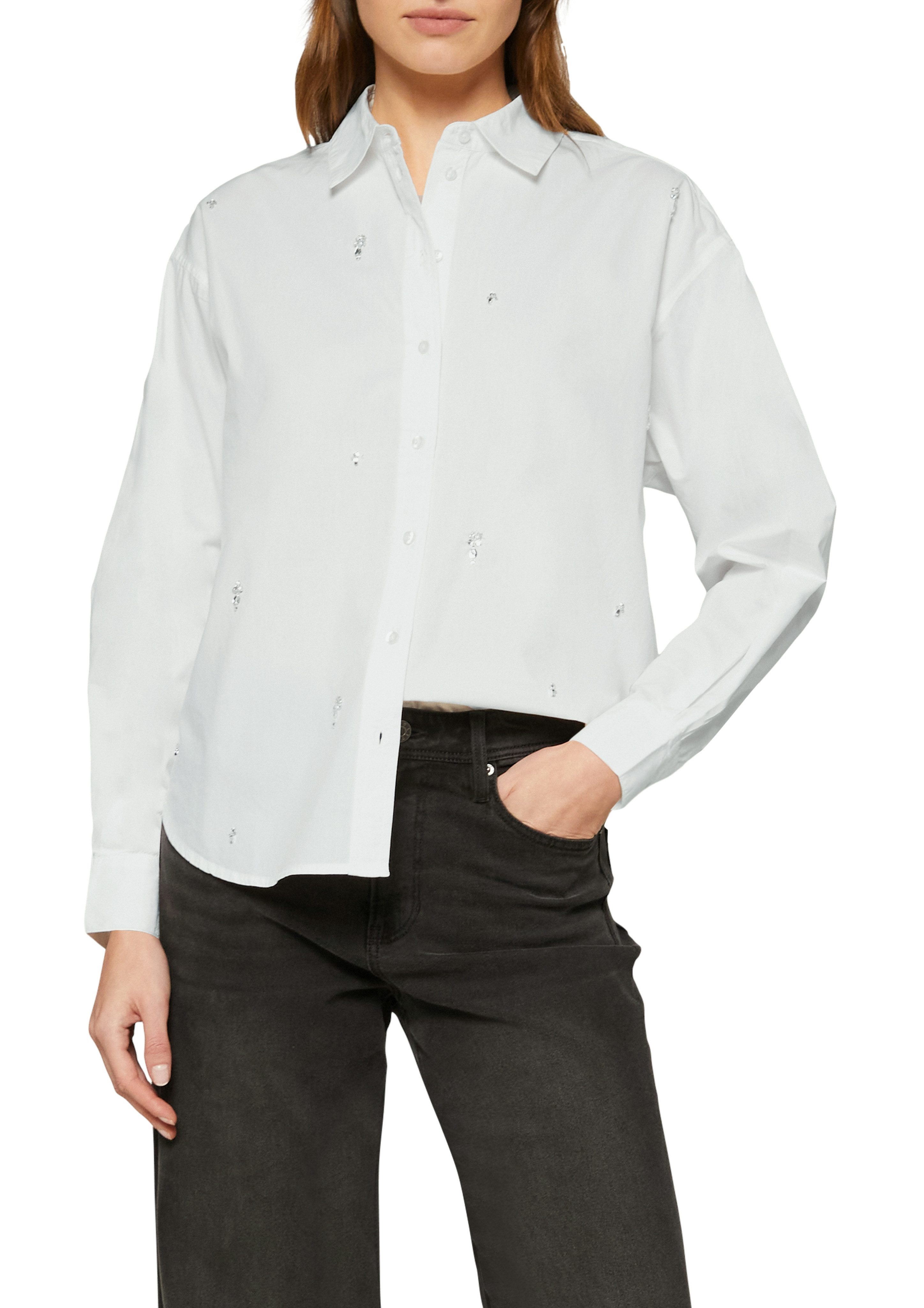 Die Langarmbluse von s.Oliver ist sowohl bei schicken Anlässen als auch im Büro eine gute Option. Durch das Markenlabel und die Strass-Steine wirkt sie raffiniert und schick. Der Kentkragen ist der klassische Umlegekragen mit spitz zulaufenden Enden, der sich für seriöse Auftritte eignet. Die langen Ärmel enden in einer Manschette. Diese Bluse ist taillenbedeckend sowie basic geschnitten, wodurch dein Oberkörper locker umspielt wird.