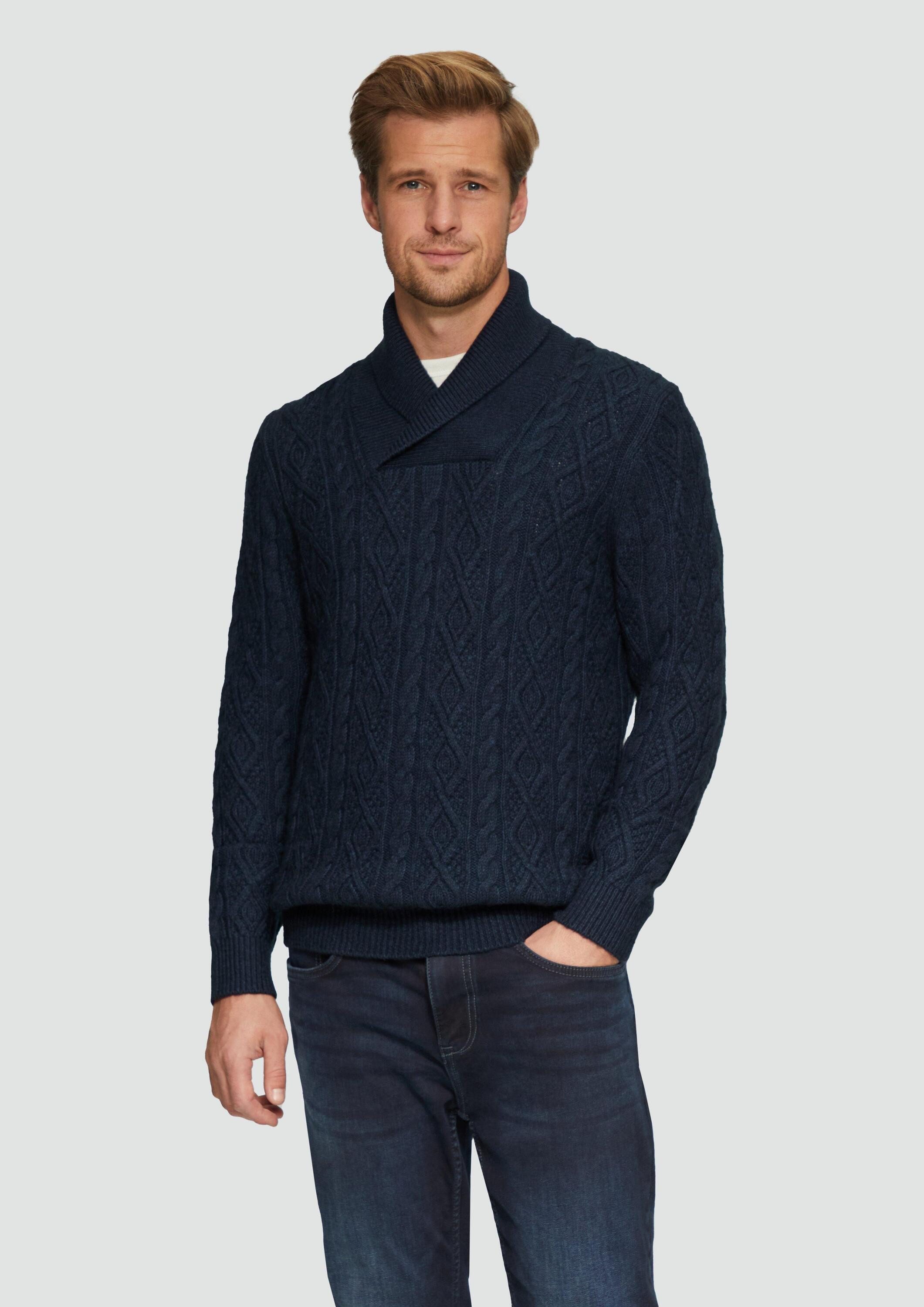 Schnittform Длина | Schalkragenpullover mit Zopfmuster aus Wollmix |