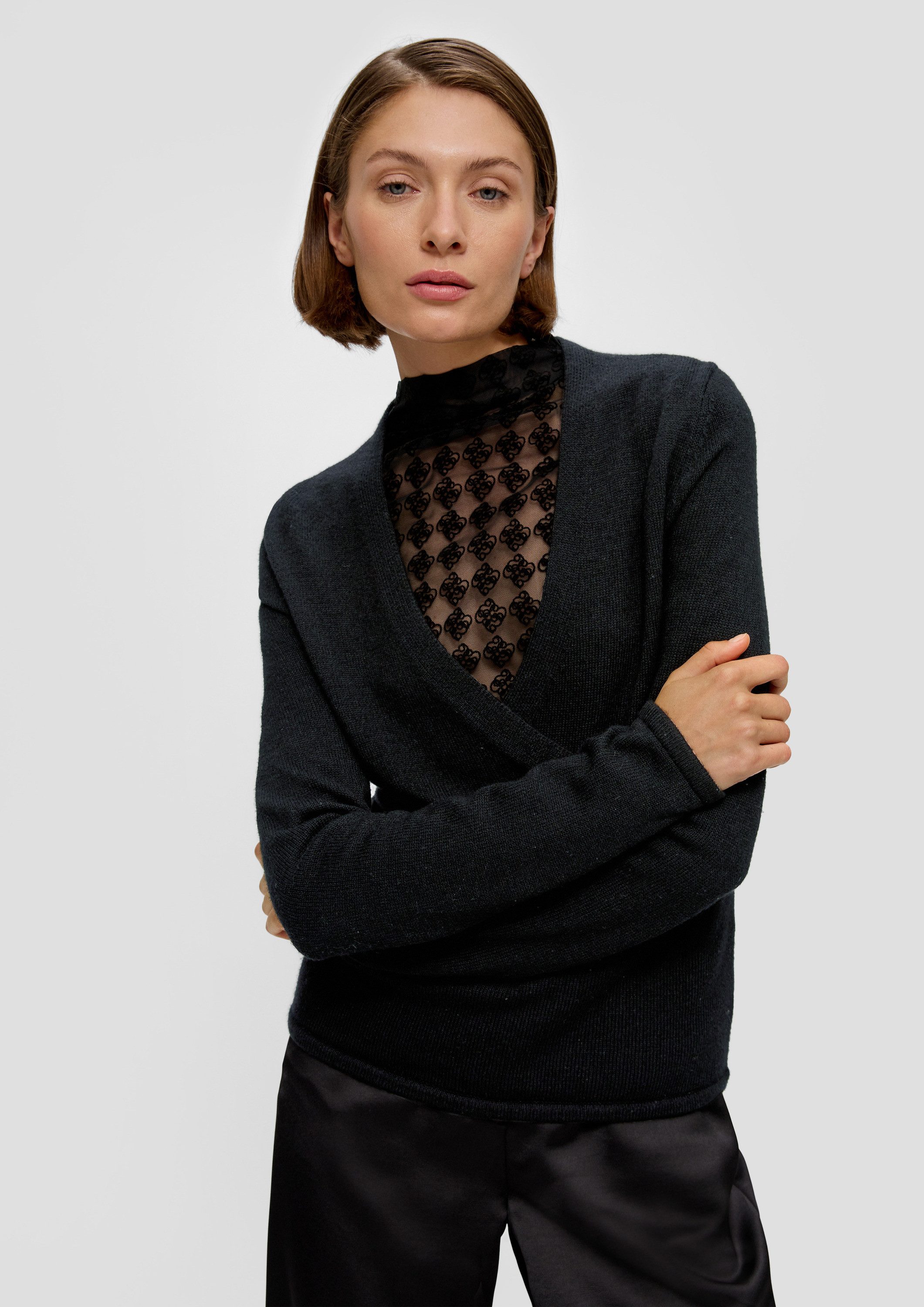 Mit dem Strickpullover von s.Oliver BLACK LABEL stellst du im Handumdrehen ein neues Outfit zusammen. Mit den Pailletten sieht er glitzernd und modern aus. Die langen Ärmel enden in einem Strickbündchen, das die Wärme schön drinnen hält. Dieser Pullover hat einen tiefen V-Ausschnitt in Wickeloptik und ist hüftlang sowie.