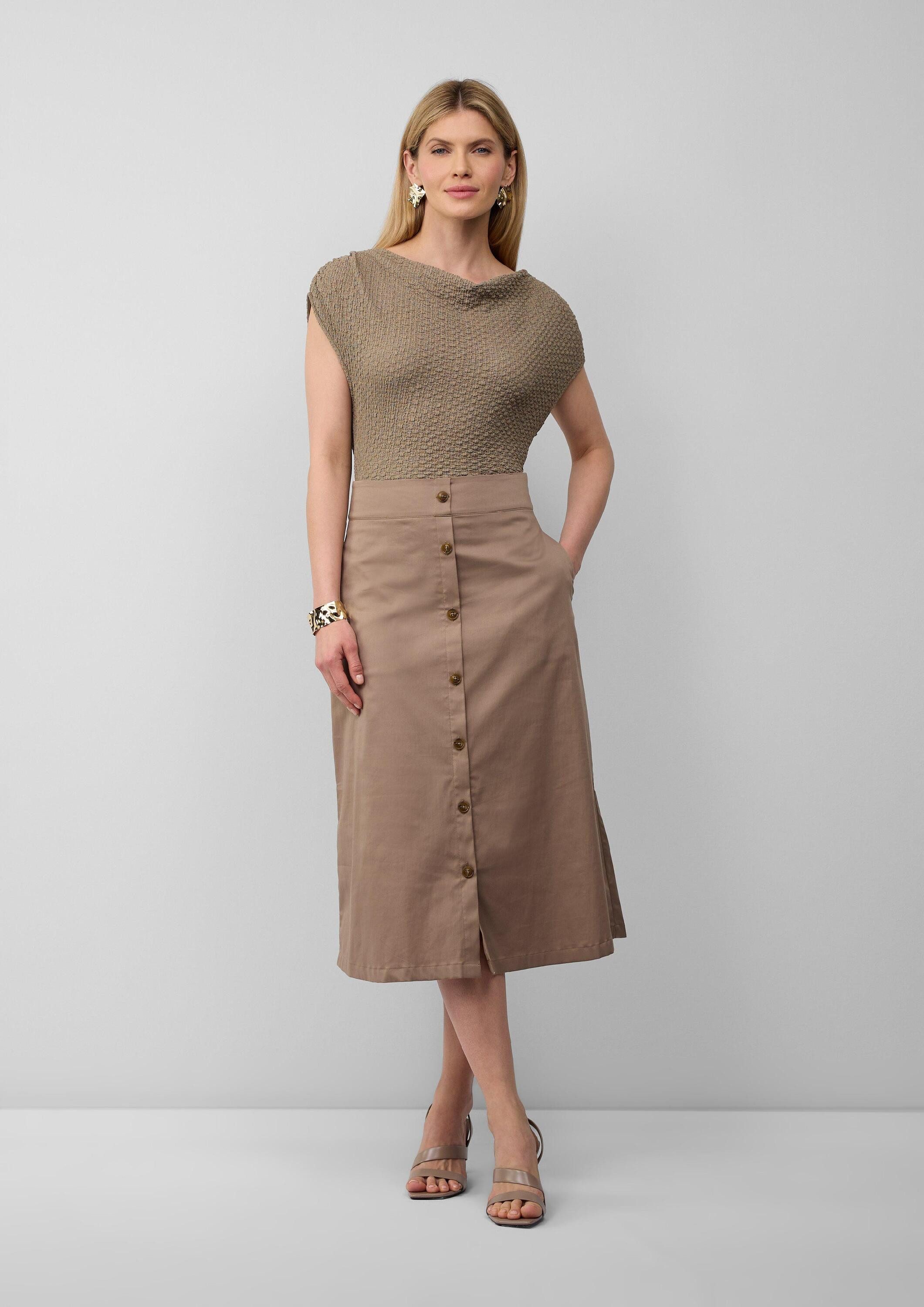 Schnittform Длина | Ausgestellter Midirock aus Popeline mit dekorativer Knopfleiste |