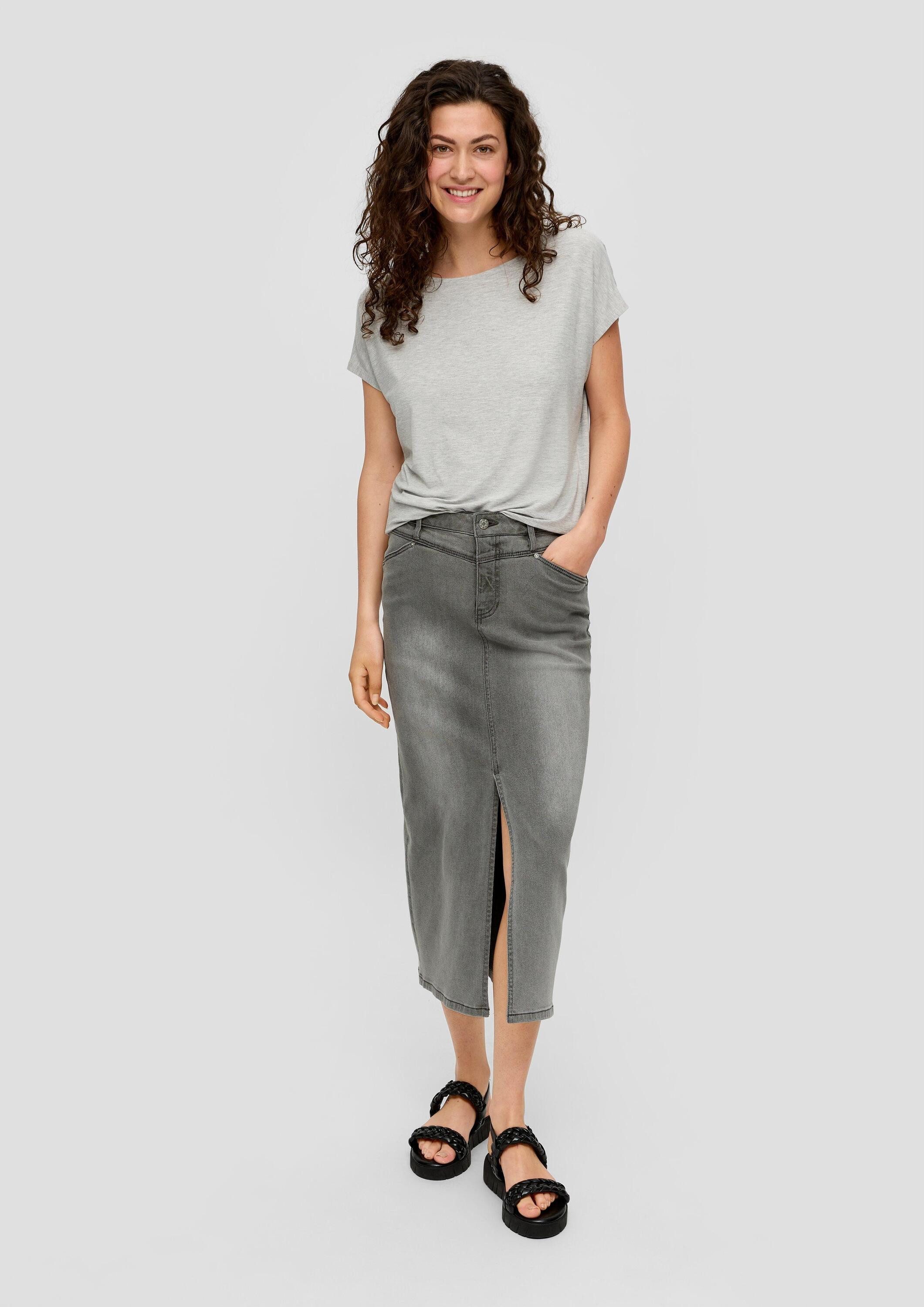 Schnittform Длина | Midirock aus Denim mit Schlitz und Sattelbund |