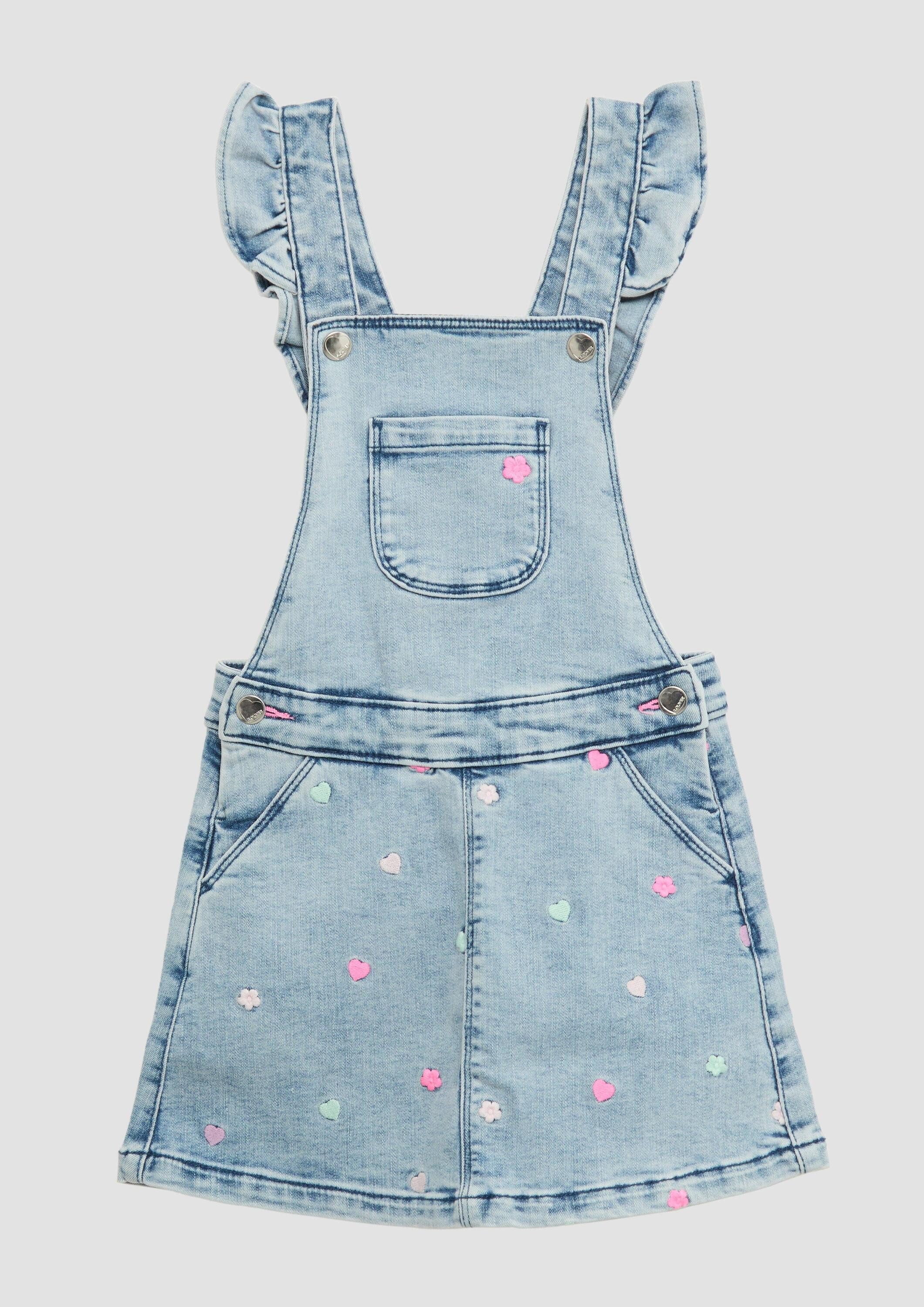 Schnittform Длина | Latzrock aus Denim mit Stickerei |