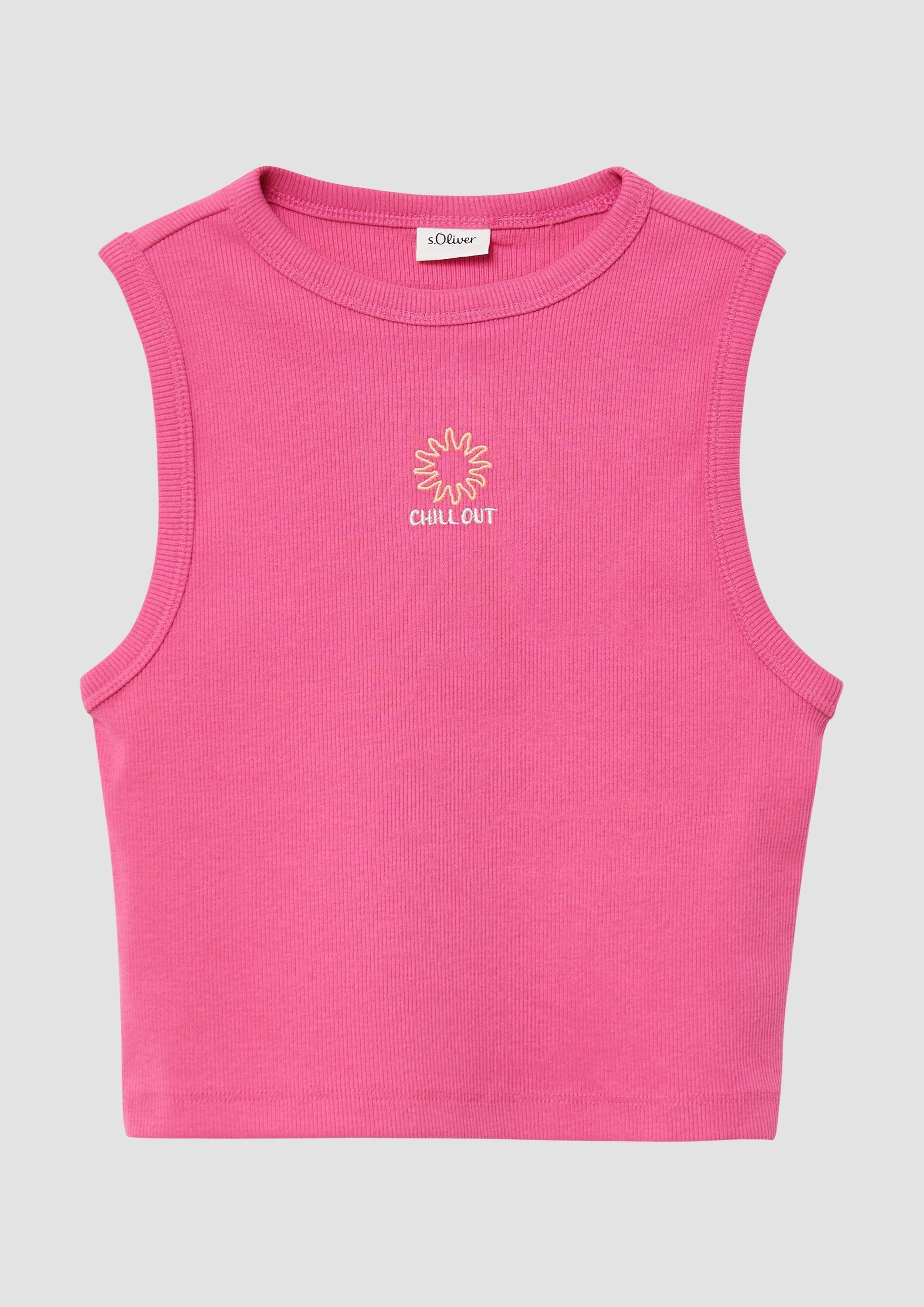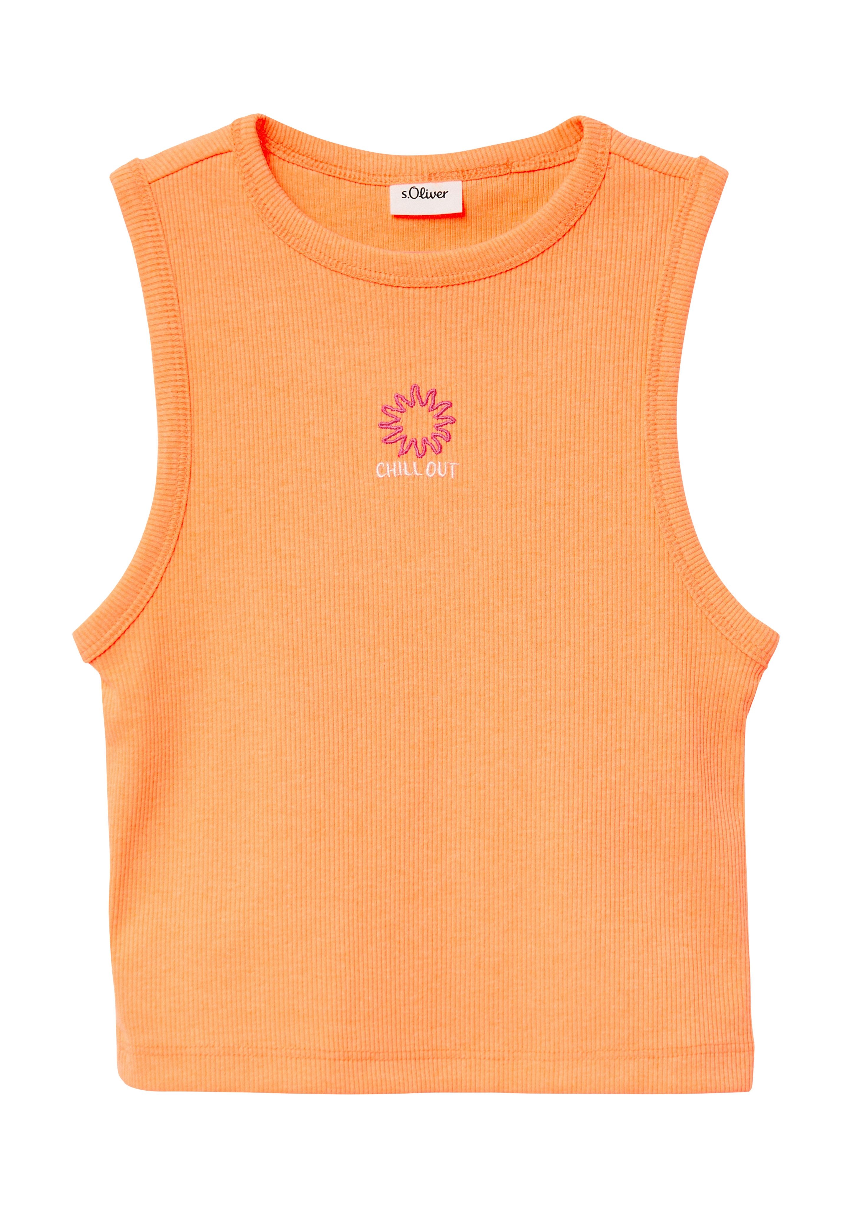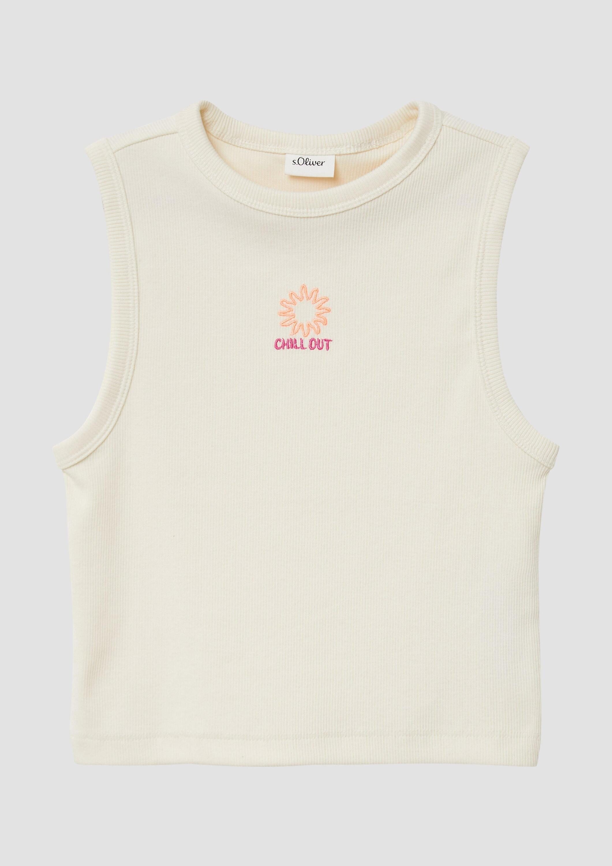 Schnittform Длина | Slim-Fit-Top aus Rippware mit Stickerei |