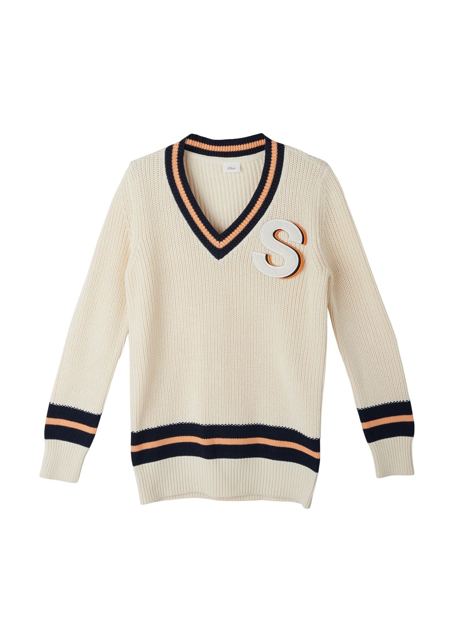 Entdecke den trendigen Strickpullover im College-Stil für junge Frauen. Dieses weiche Stück verleiht deinem Look eine lässige Note. Perfekt für Teens, die Komfort und Style suchen. Der Regular Fit und die Rippbündchen sorgen für eine bequeme Passform. Mit seinem V-Ausschnitt und der Rippblende am Saum ist dieser Pullover ein echtes Must-Have für den lässigen Alltagslook. Kombiniere ihn mit Jeans und Sneakern für einen coolen und entspannten Style. Hol dir jetzt diesen vielseitigen Begleiter für jede Casual Gelegenheit! Worauf wartest du noch? Style dich neu mit unserem Strickpullover!
