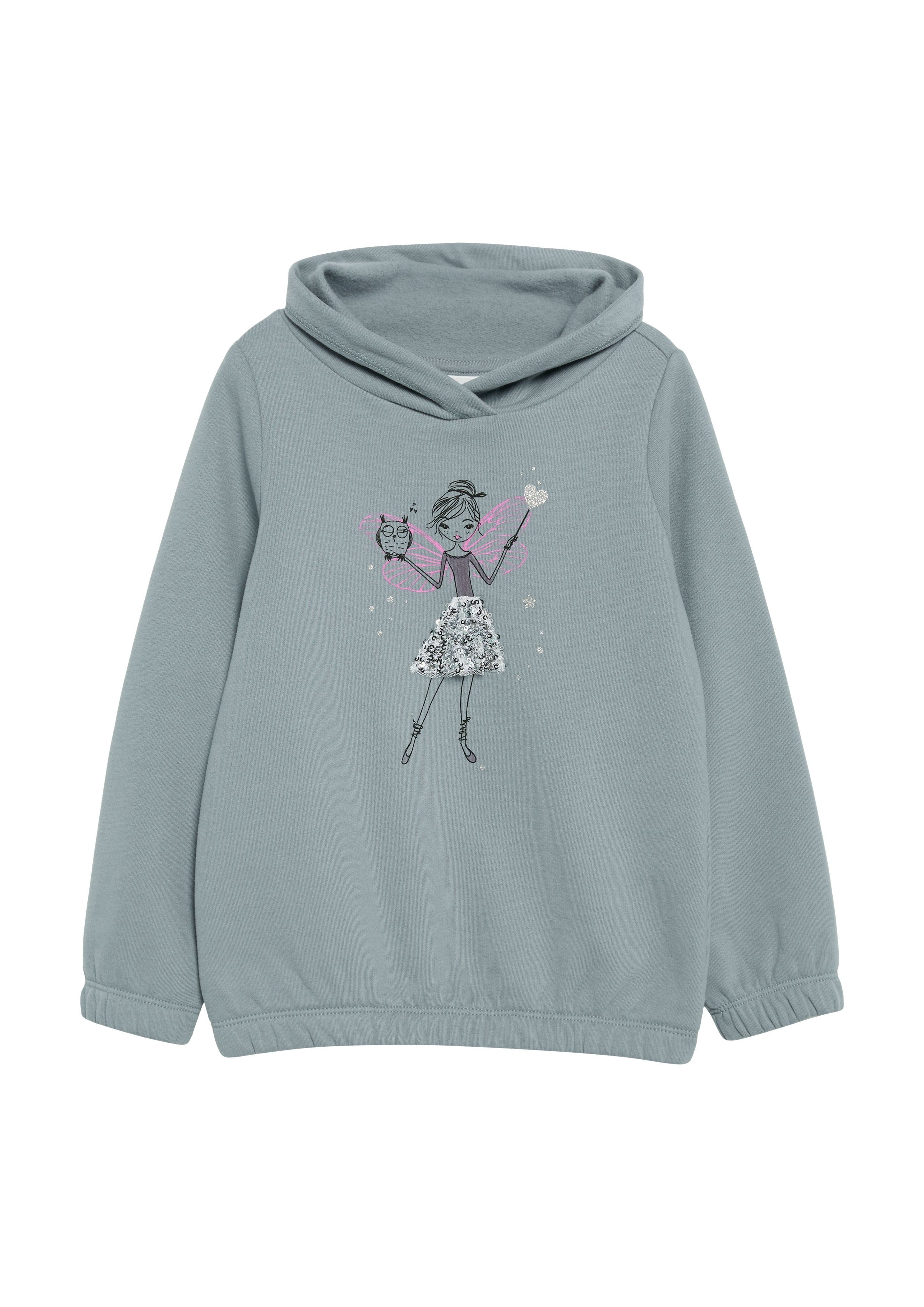 Schnittform Длина | Wärmendes Sweatshirt mit Schalkragen und Glitzer-Artwork |