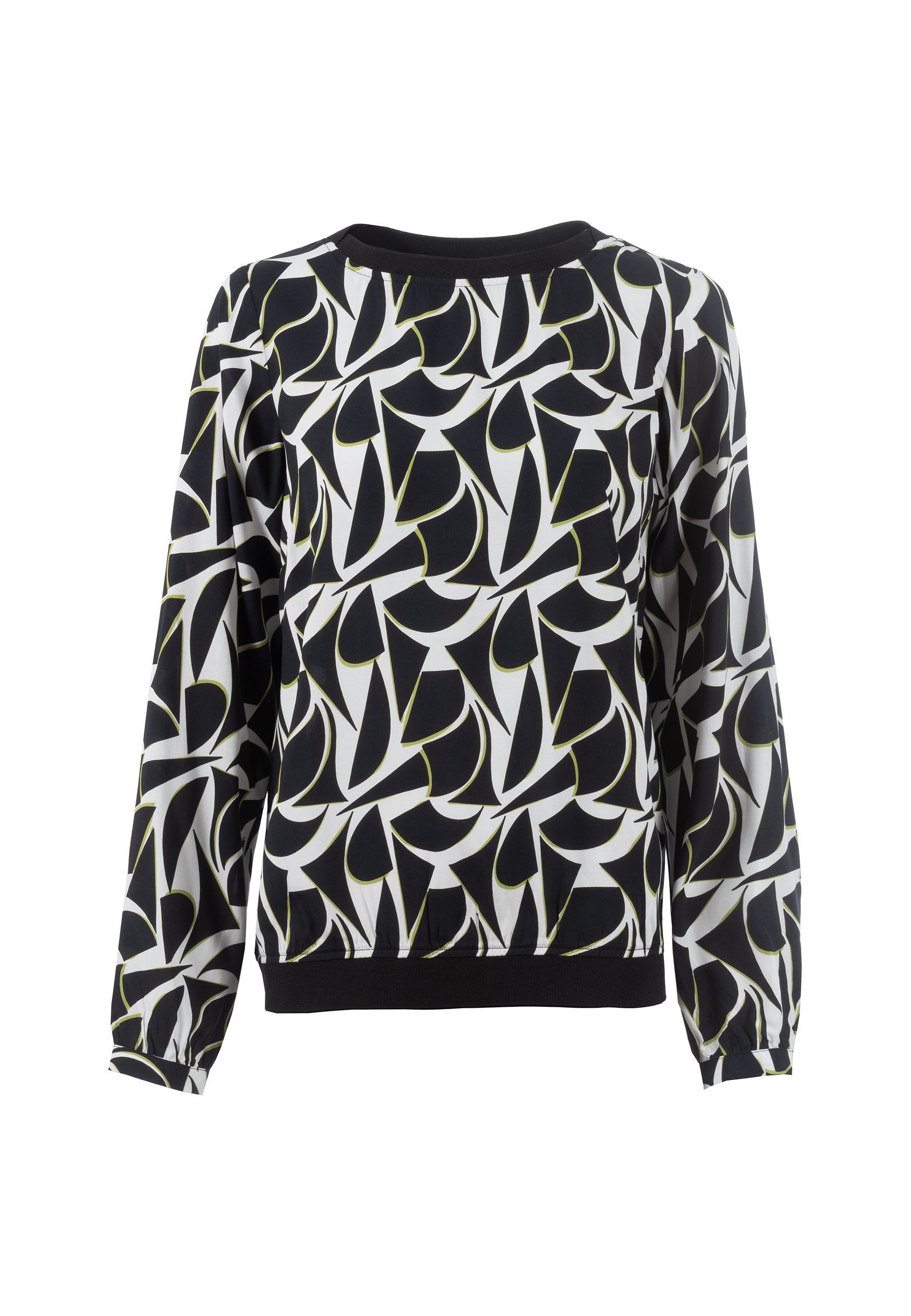 Lockere Bluse mit grafischem Allover-Print mit grünen Farbakzenten.