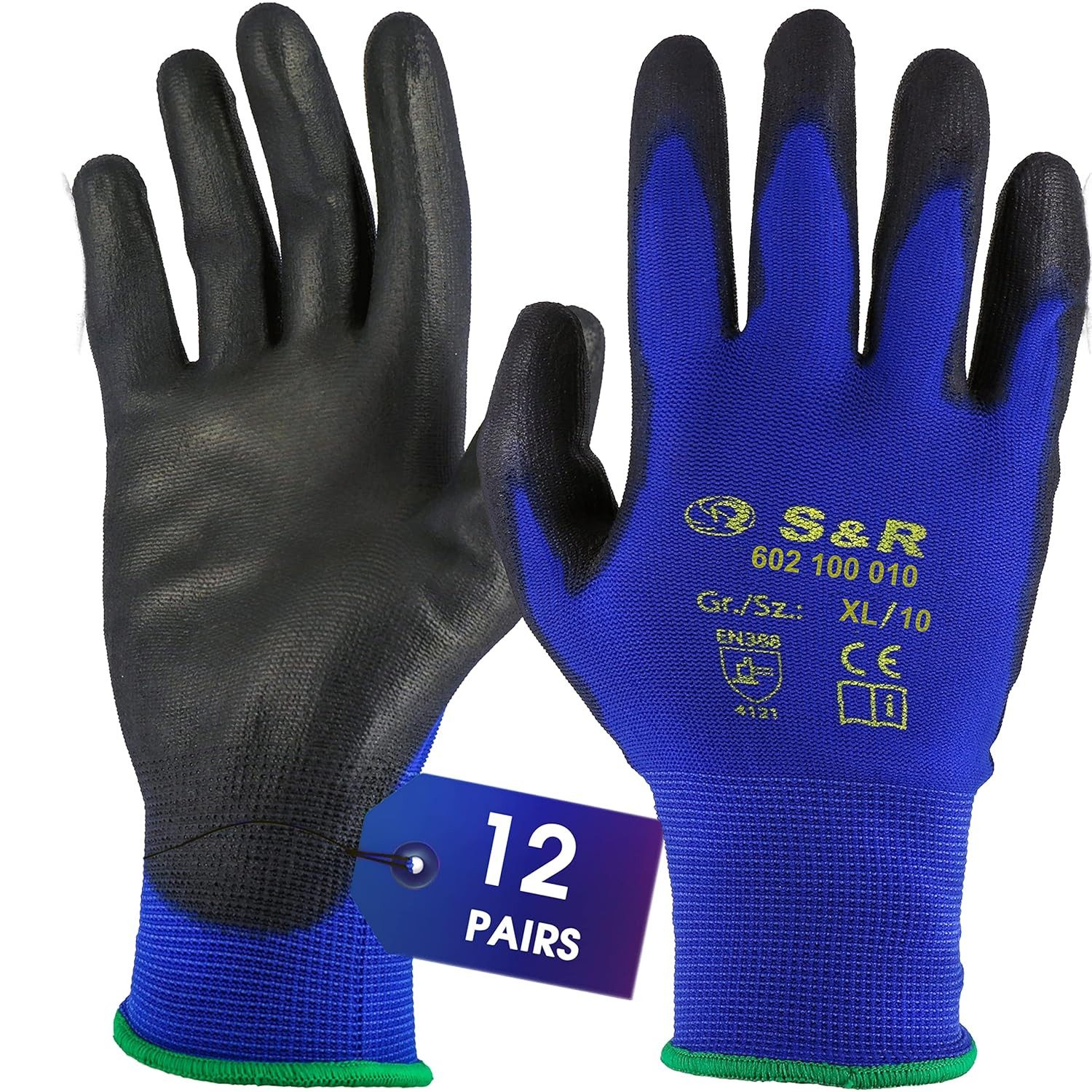 S&R Arbeitshandschuhe, Schutzhandschuhe aus Polyesterfaser mit spezieller Polyurethan-Beschichtung.