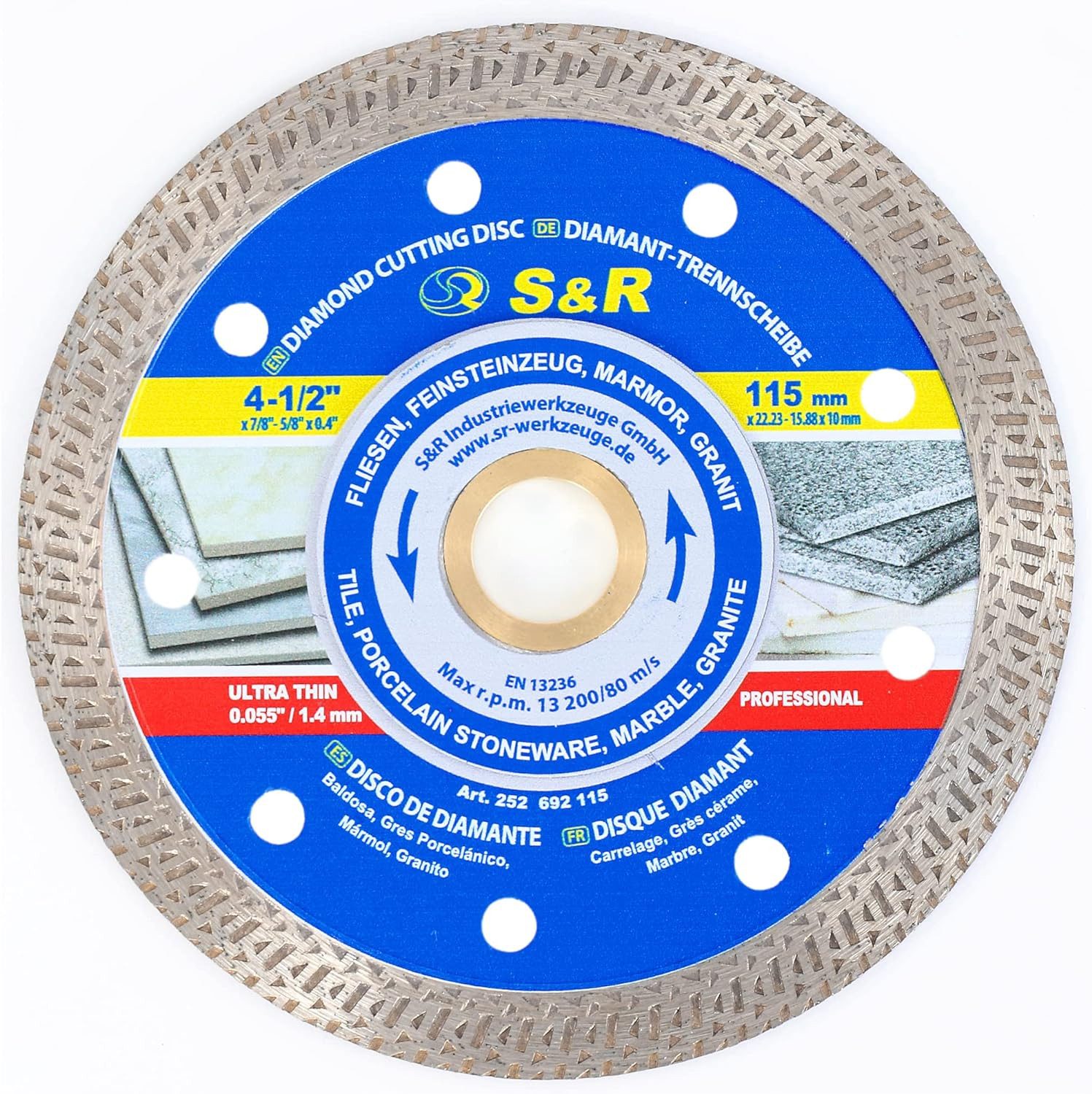 S&R Turbo Diamanttrennscheibe superdünn 115 mm / 7" - für Keramik, Keramikfliesen, glasierte Fliesen, Bodenfliesen, Feinsteinzeug, Porzellan, Marmor, Kacheln, Kalkstein