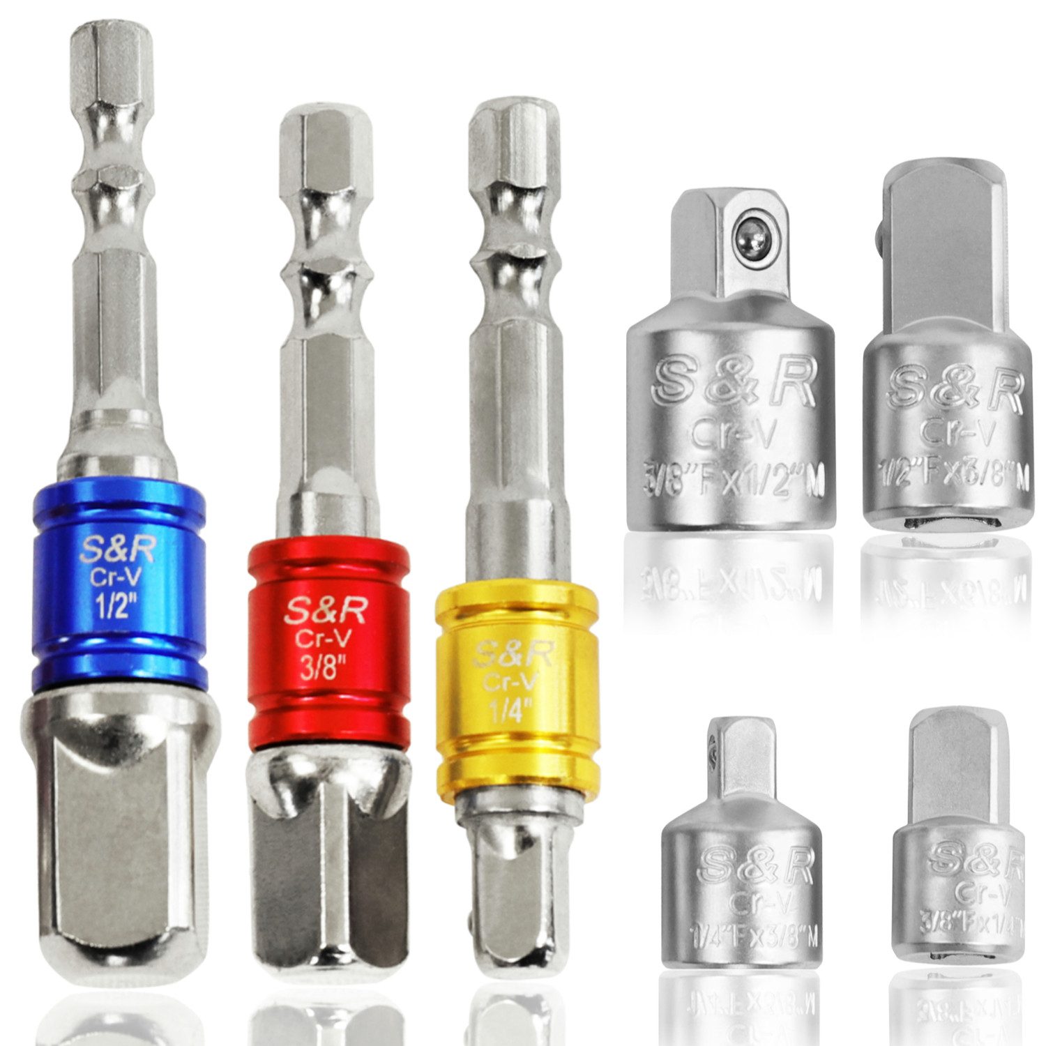S&R Jeu d'adaptateurs à douilles pour perceuses, visseuse et porte-embouts - 7 PCS