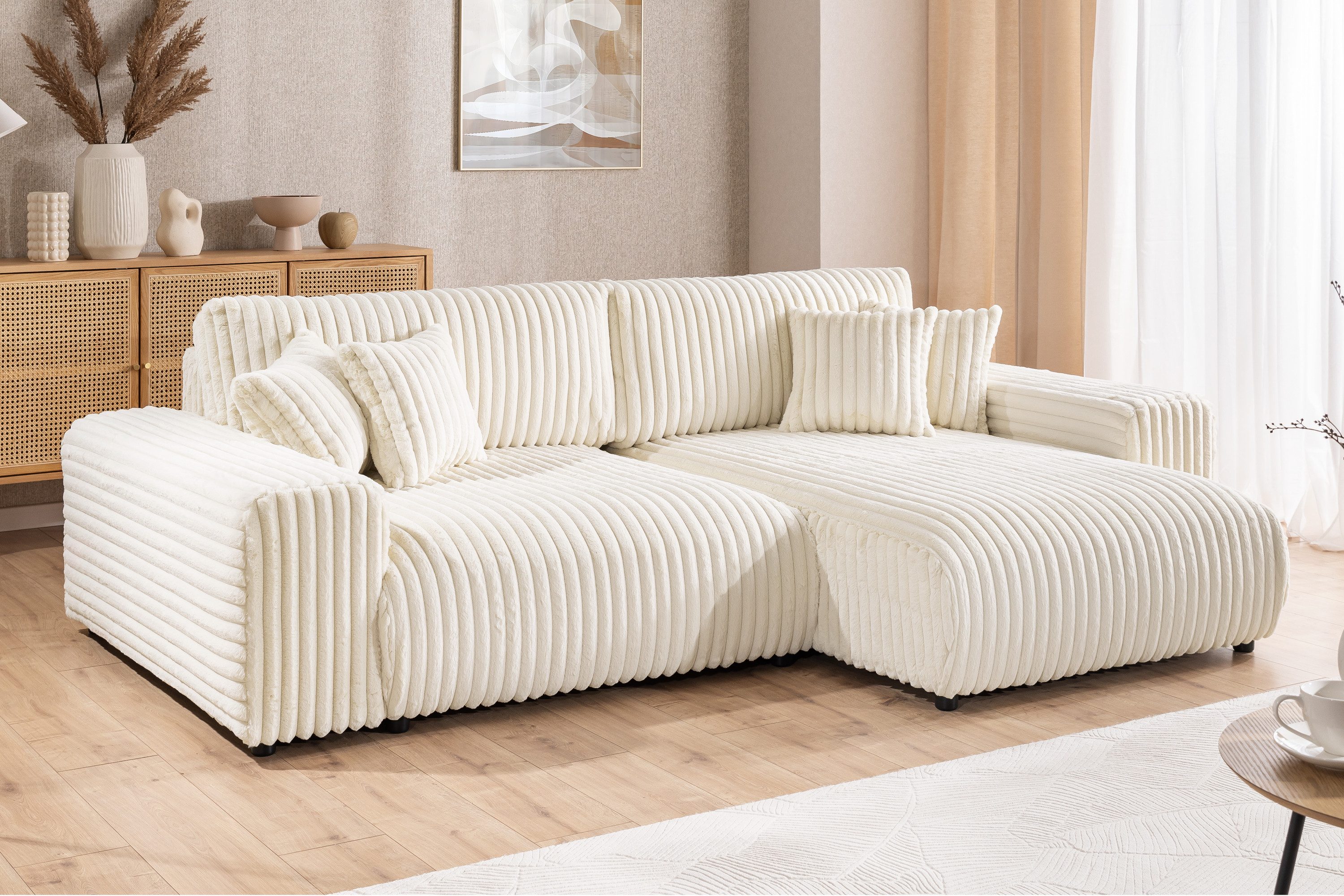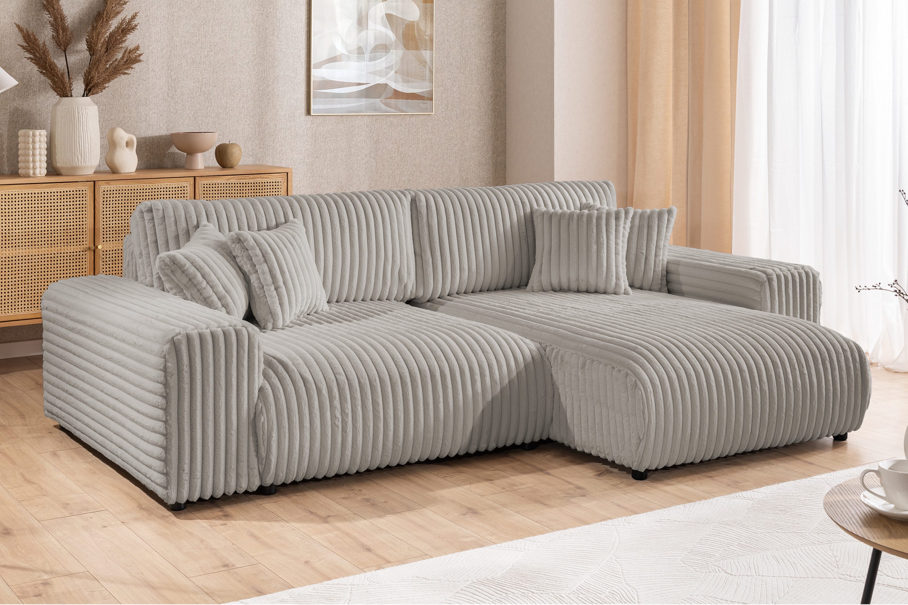 Lieferzustand | Der Kunde muss nur die Füße und Arme an den Teil des Ecksofas schrauben und die Ottomane mit dem zweisitzigen Teil montieren. |