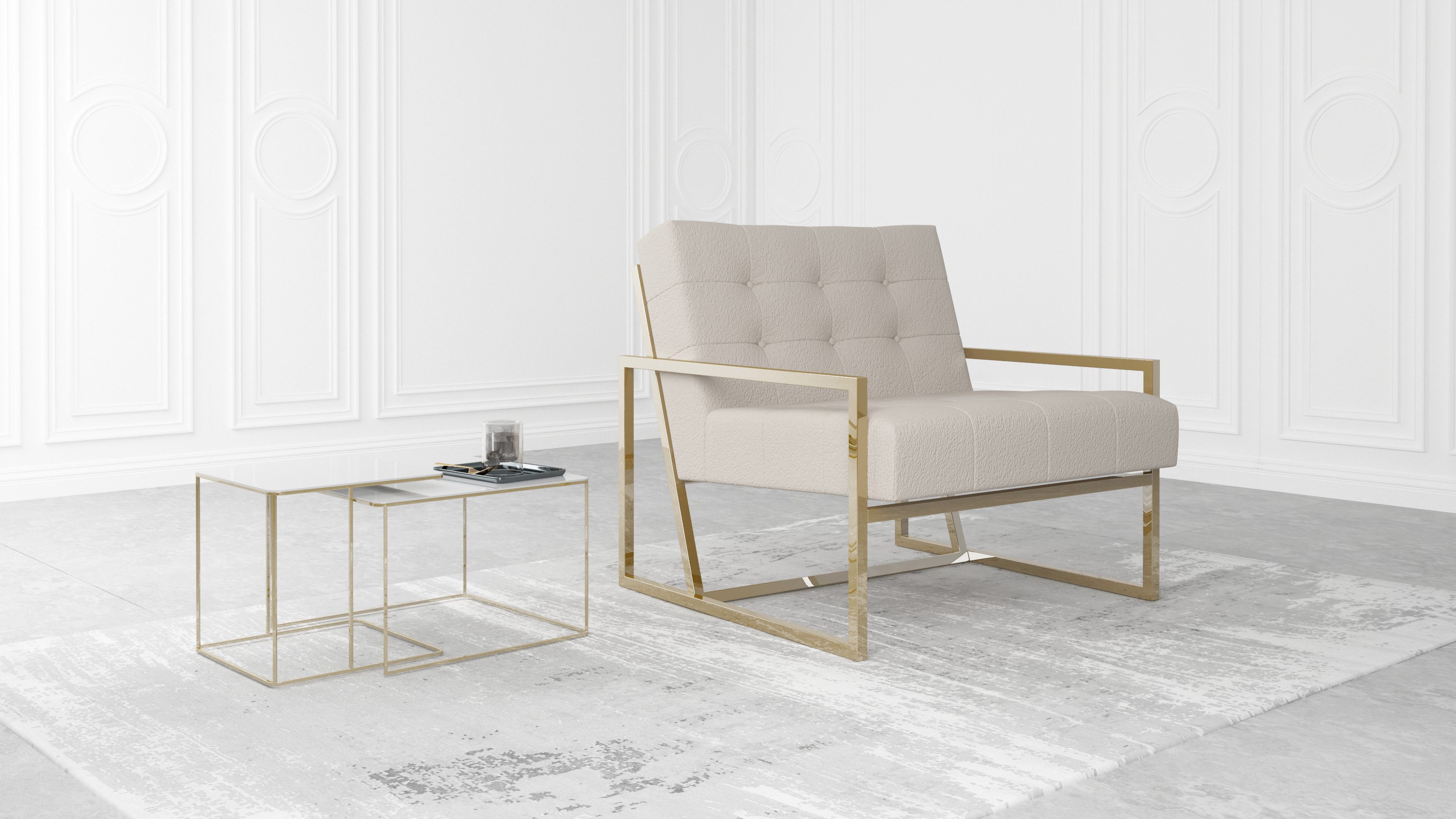 Serienhinweise | Die Sessel aus der Tampa-Serie sind mit goldenen oder silbernen Beinen erhältlich |