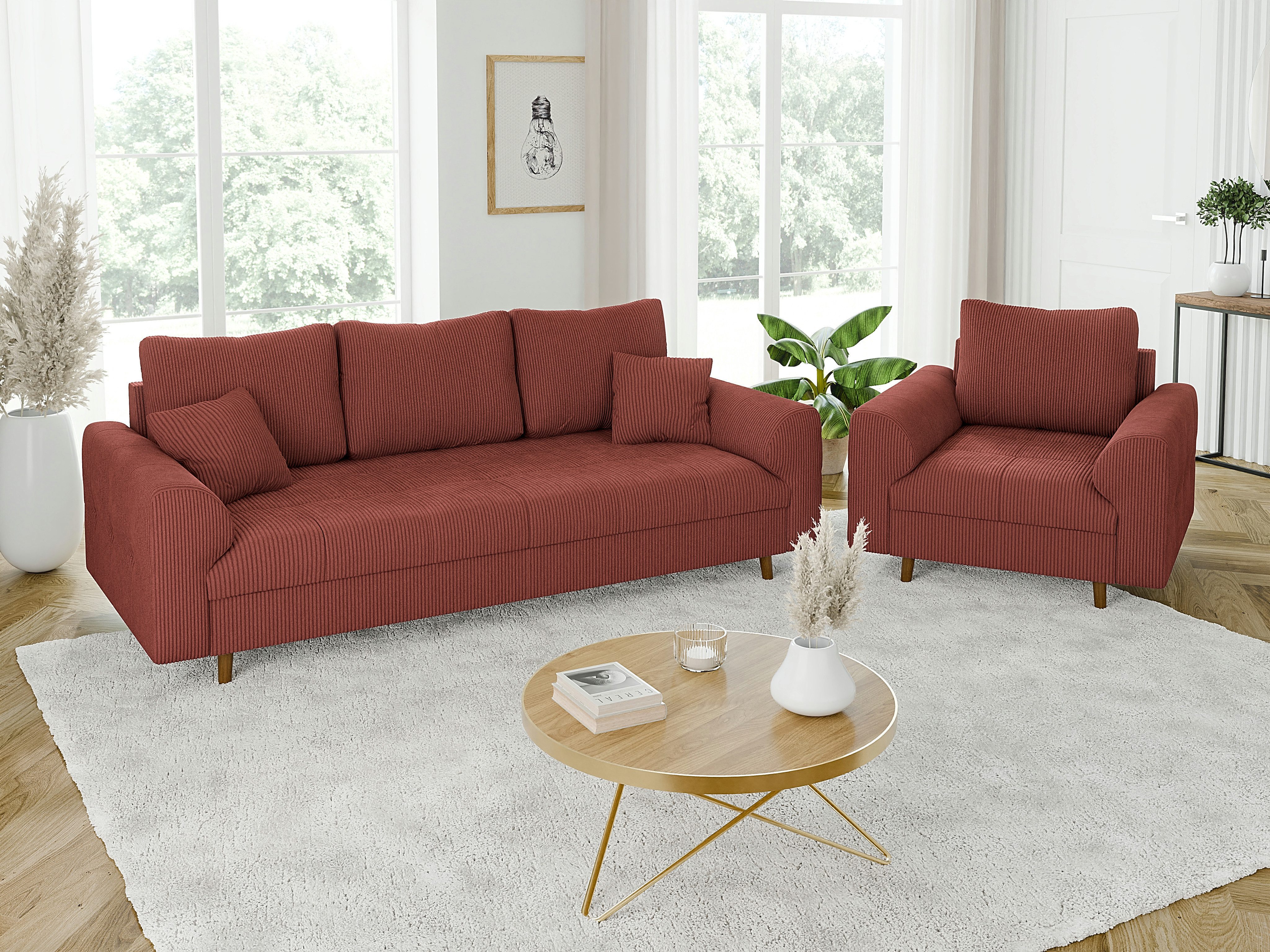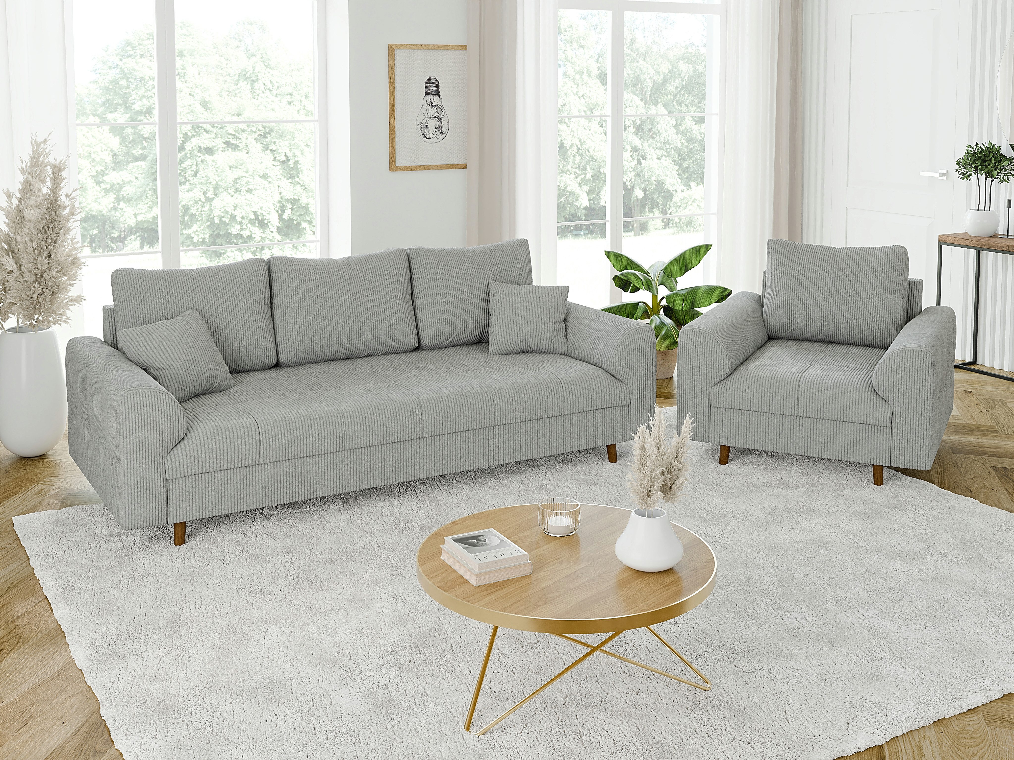Ausstattung | Rückenkissen: 3-Sitzer-Sofa - 3 x 60x44x23 cm / Sessel - 1 x 60x44x23 cm Zierkissen: 3-Sitzer-Sofa - 2 x 38x38x17 cm / Sessel - |