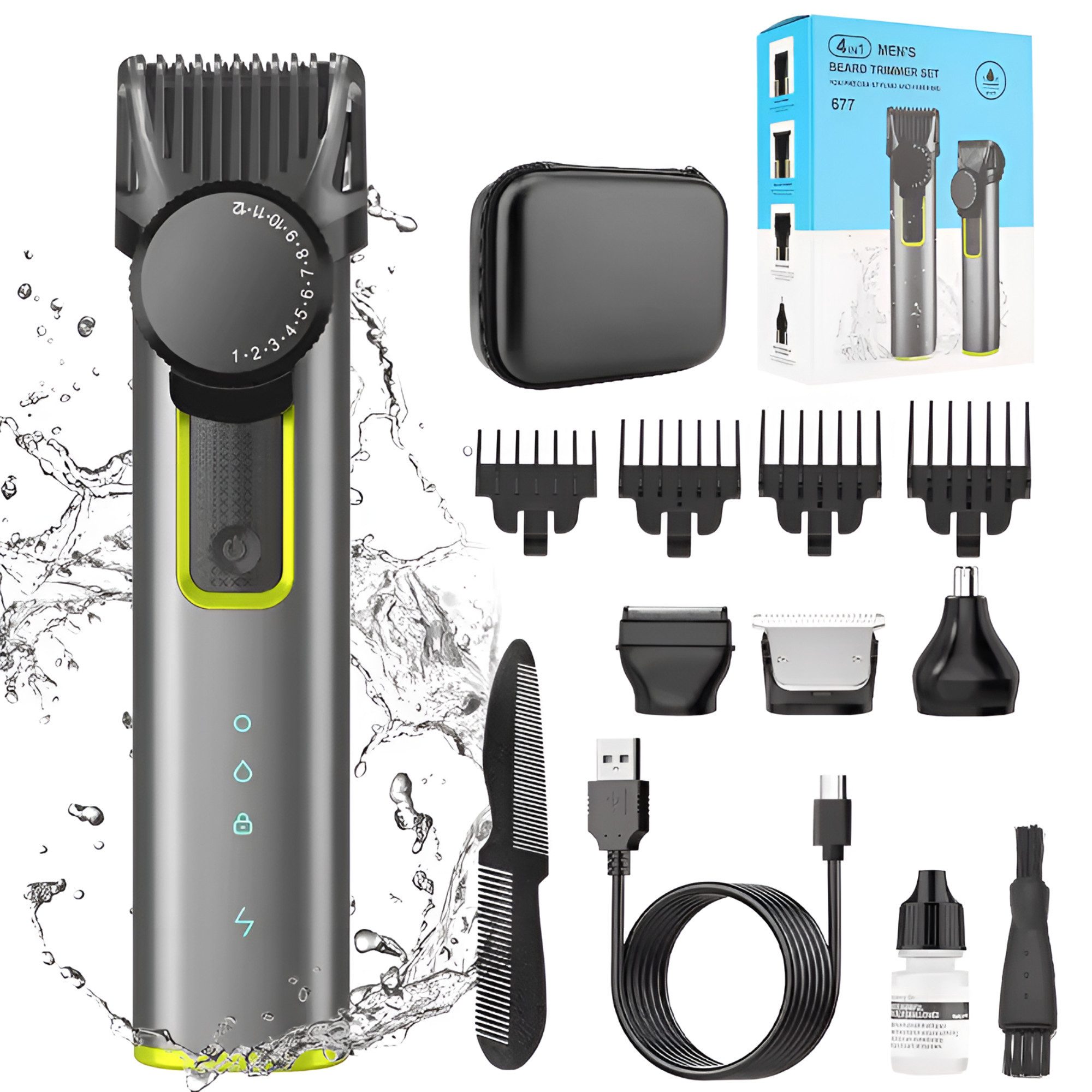 Entdecken Sie das vielseitige S&T Design 4-in-1 Professionelle Haarschneider Trimmer Set, ideal für die Pflege von Haaren, Bart, Nasenhaaren und Spliss. Perfekt für den Einsatz zuhause, im Hotel oder unterwegs.