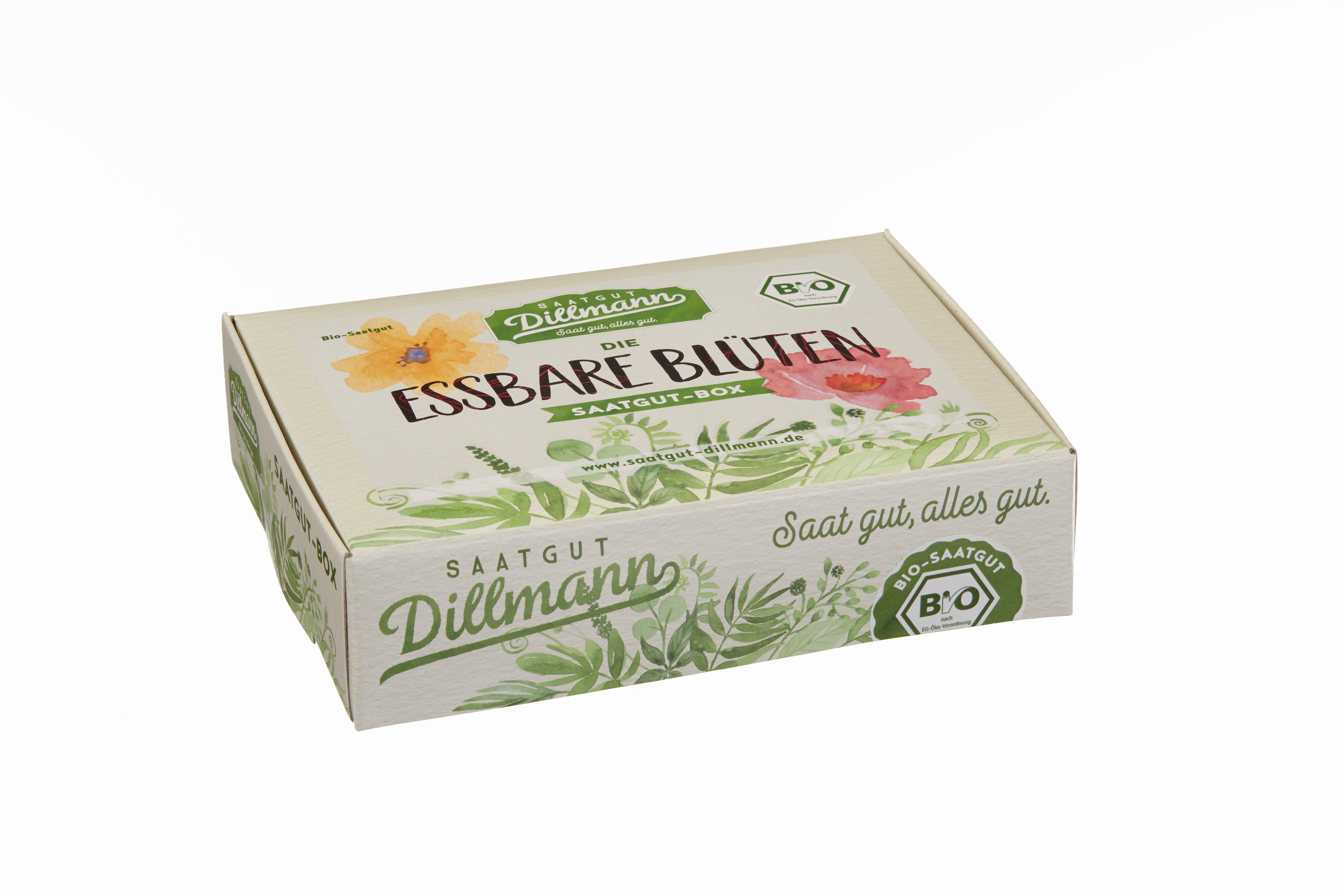 Geschenkkarton mit sechs verschiedene ausgewählte Sorten an Essbaren Blüten.