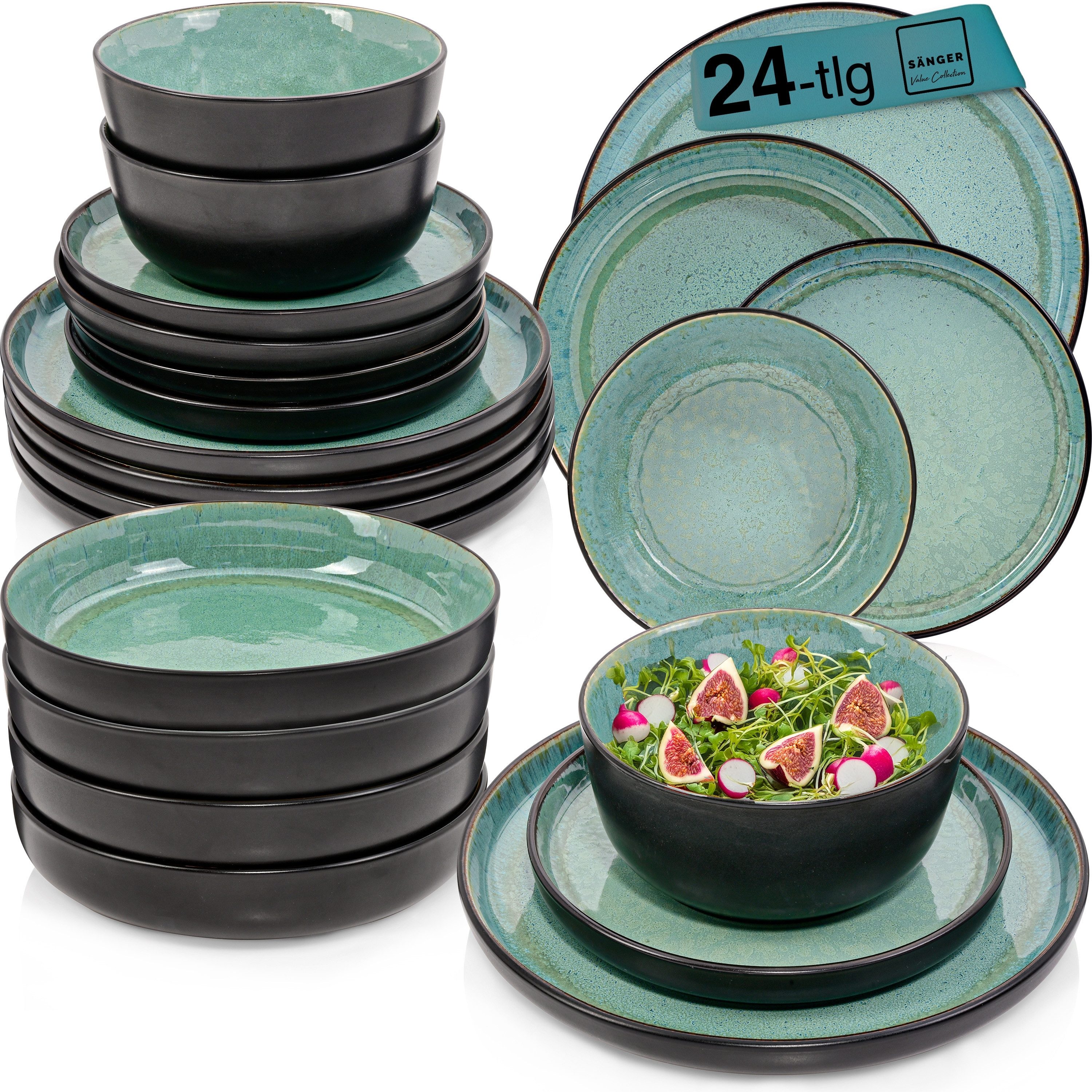 Die natürliche Textur und die handgefertigte Qualität des Steinguts verleihen diesem Set eine rustikale Eleganz, die jeden Tisch aufwertet. Ob für den täglichen Gebrauch oder besondere Anlässe, dieses Kombiservice vereint zeitloses Design mit moderner Funktionalität und ist ein unverzichtbares Element für jede Küche, das Ihnen lange Freude bereiten wird.