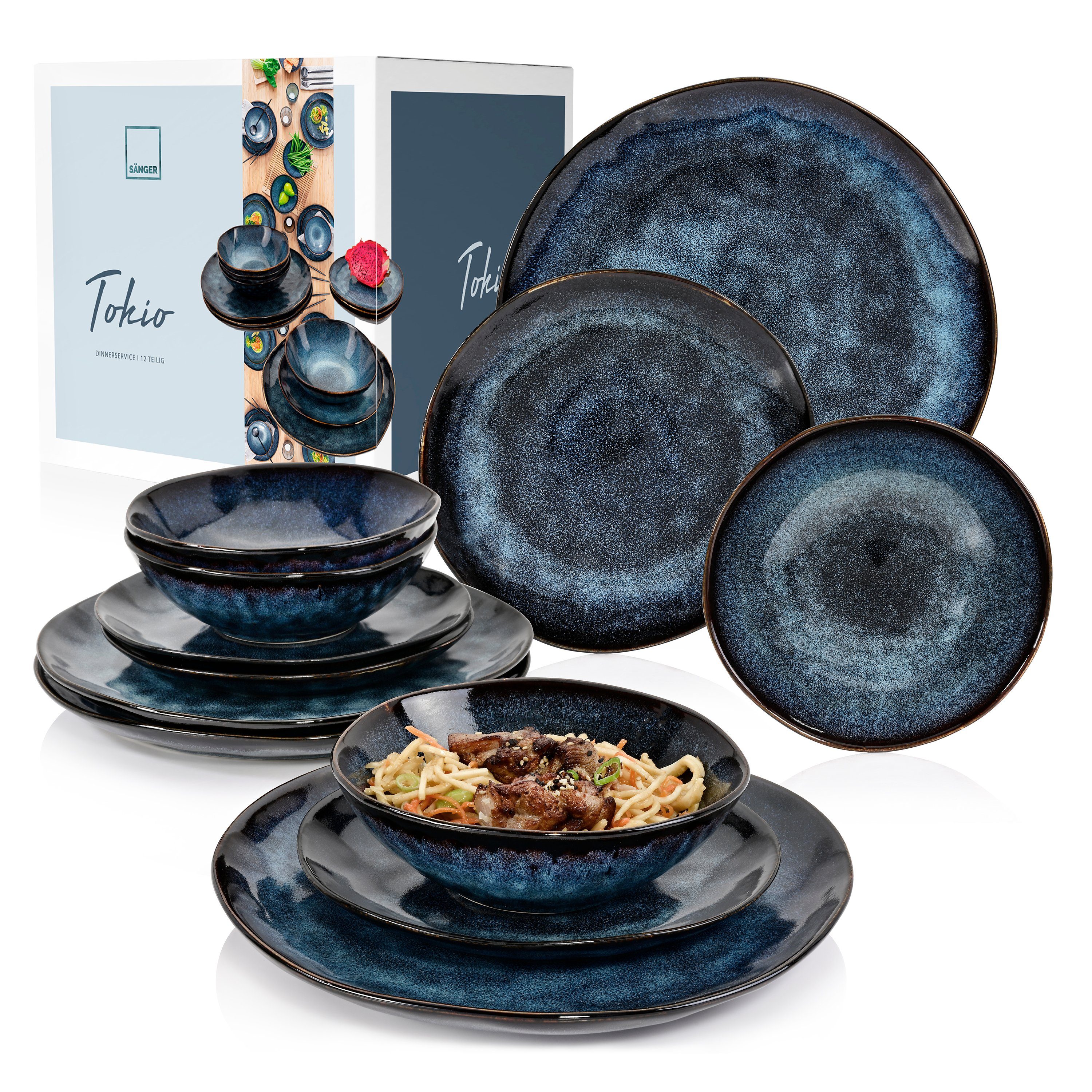Dank des dunkelblauen Designs mit den schwarzen Akzenten wird jede Tischdekoration zu einem echten Hingucker und passt zu verschiedenen Anlässen. Ideal für den täglichen Gebrauch, besondere Anlässe, Partys und Feiern. Все Teller und Schalen sind spülmaschinen-& mikrowellengeeignet.