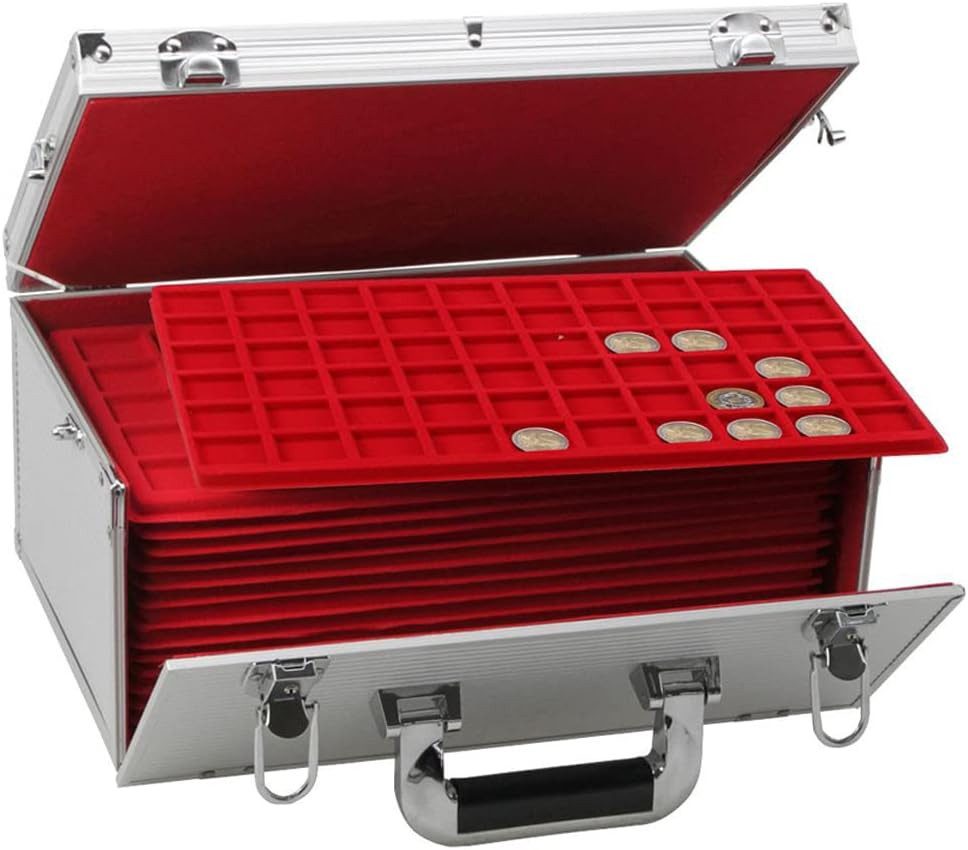 Riesiges Fassungsvermögen für 2 Euro-Münzen | Innen mit rotem Samt & abschließbar | Stabiler Koffer mit Tragegriff