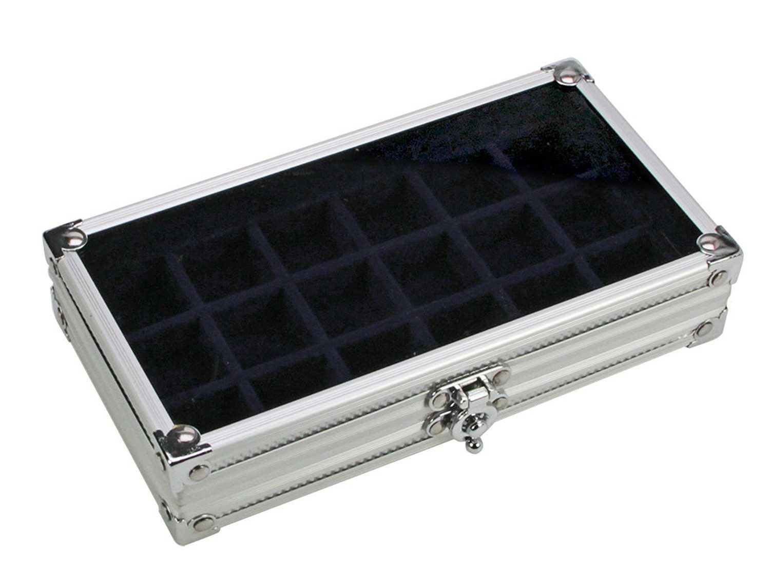 • 18 Fächer mit Velours-Schaumstoffeinsatz