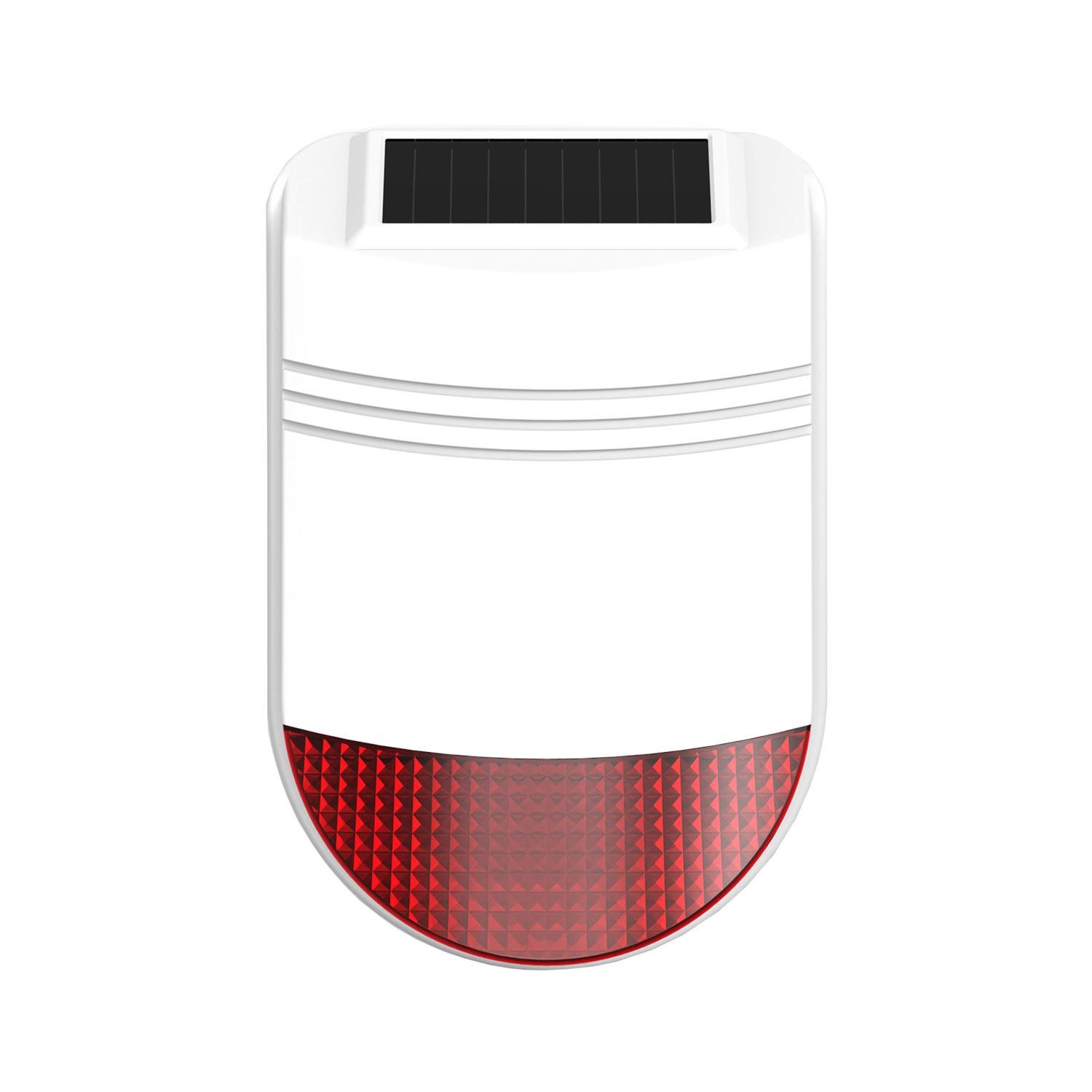 Safe2Home® Solar Funk Außensirene für Funk Alarmanlage Safe2Home Serie SP110 / SP210 mit Repeater Funktion Die Außensirene im modernen Design. An der oberen Seite der Außensirene befindet sich ein integriertes Solar Panel. Diese Sirene benötigt keinen zusätzlichen Stromanschluss. Tageslicht ist für den Betrieb völlig ausreichend. Es wird keine direkte Sonneneinstrahlung benötigt. Zusätzlich bietet der starke Akku in der Sirene eine lange und zuverlässige Laufzeit. Robustes, wetterfestes Kunststoffgehäuse. Durch die Sirene wird bei einem Einbruch zusätzlich zu Ihnen auch die Nachbarschaft durch einen lauten Signalton und Licht informiert. Sabotageschutz durch Wand- und Deckelkontakt. Durch den innenliegenden Akku ertönt auch bei Stromausfall "oder" durchschneiden des Kabels -> ein Alarm.