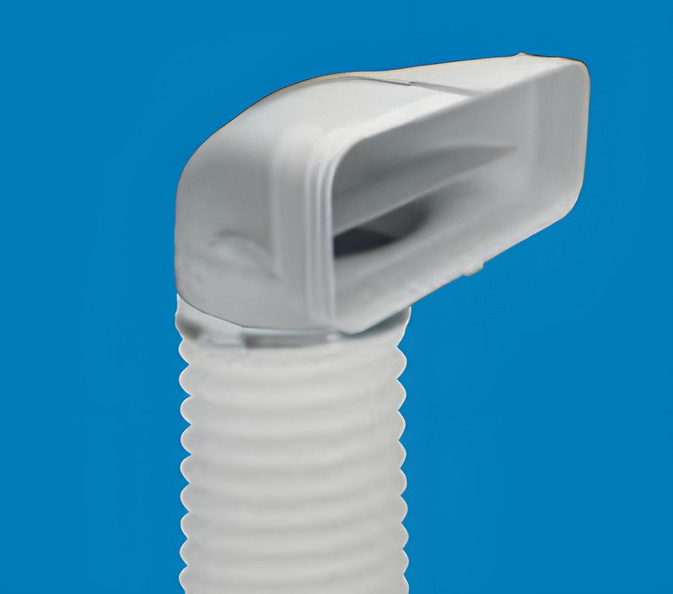 - Umlenkstück mit Flexschlauch, 222 x 89 mm auf Ø 150 mm inkl. 2 Schellen