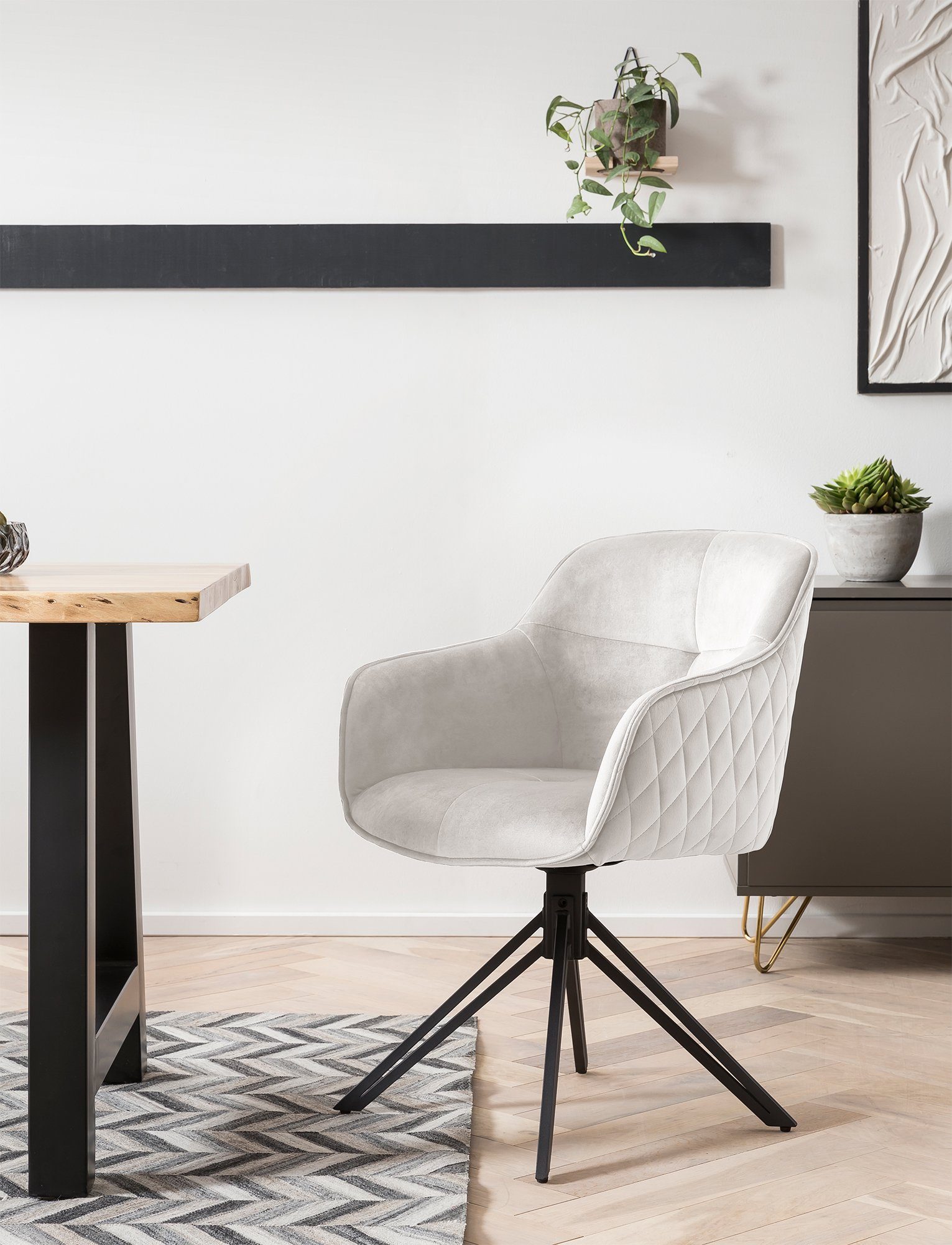Der Armlehnstuhl zeigt sich im modernen Stil und kreiert ein stilvolles Ambiente. Indem du die Einrichtung in dezenten Farben wie Weiß oder Grau hältst, Materialien aus Glas oder Naturstein bevorzugst und dich aufs Wesentliche fokussierst, unterstreichst du die Schönheit des Minimalismus.