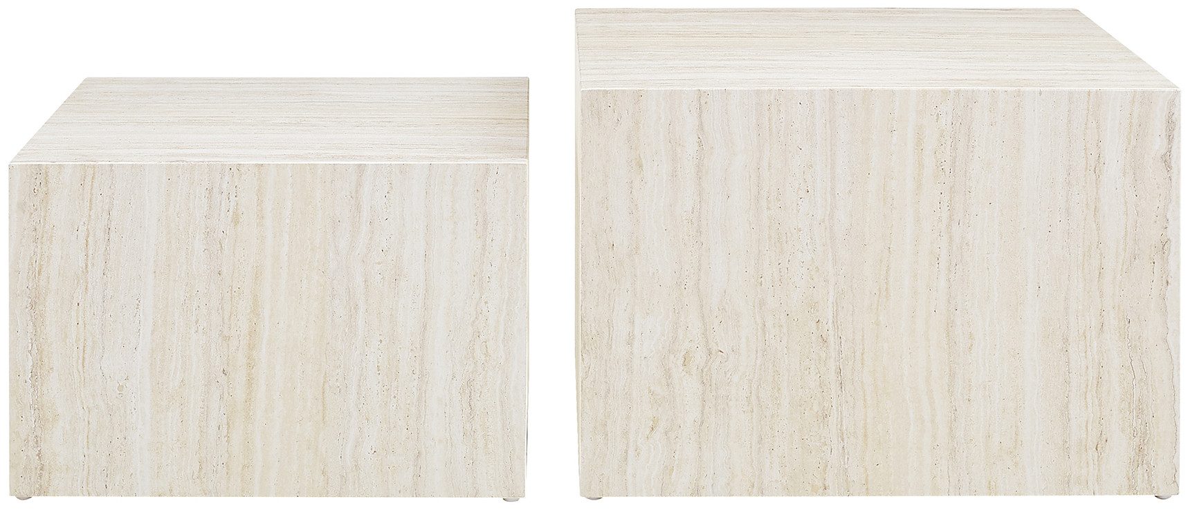Wissenswertes | Maße des kleinen Tischs: ca. B50 x T50 x H33 cm foliert mit Melaminfolie in Marmoroptik foliert mit Melaminfolie in Travertinoptik bzw. Marmoroptik (je nach Ausführung) |