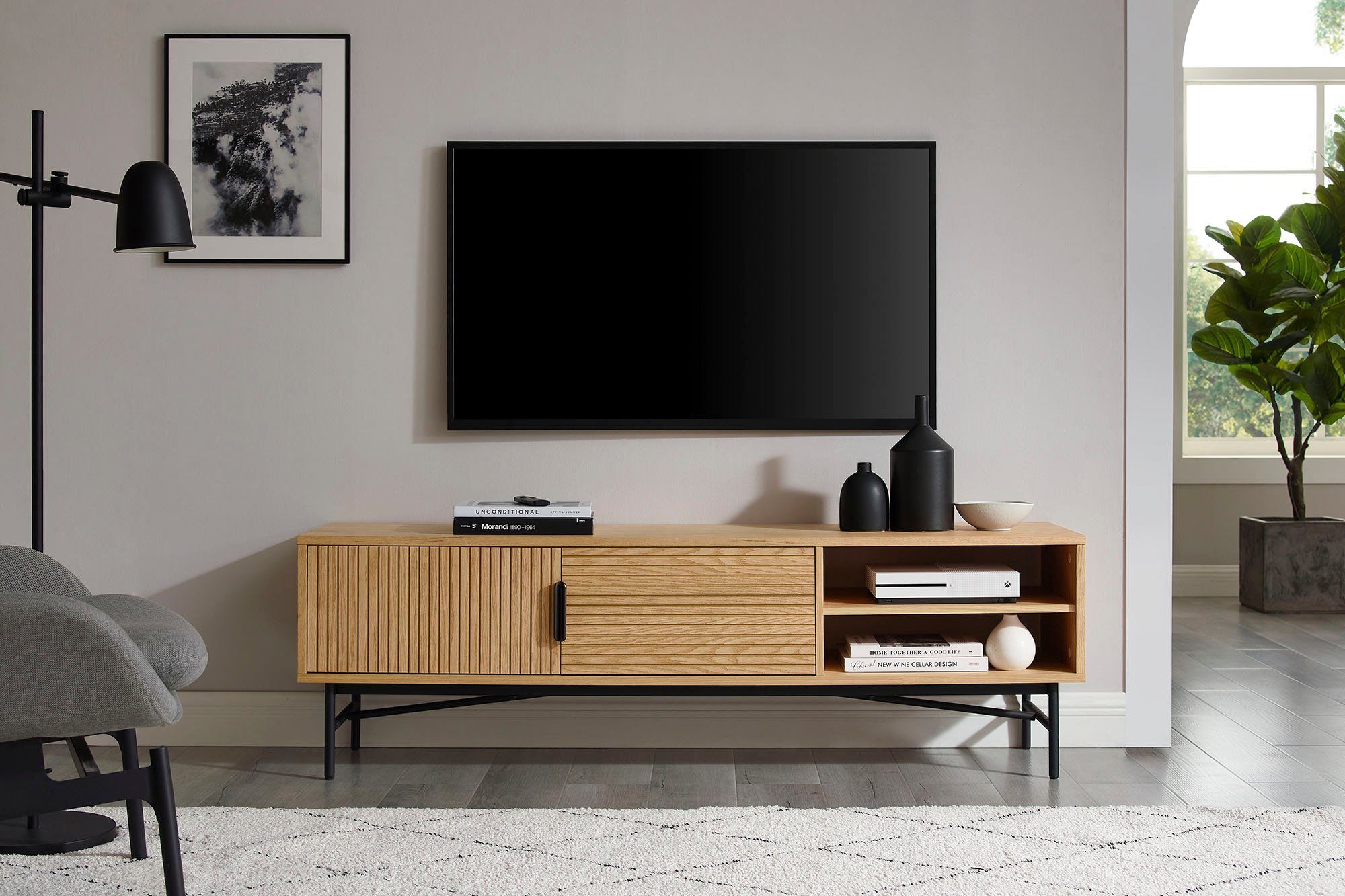 Modern designt, lässt sich das Lowboard mit vielen Einrichtungsstilen harmonisch kombinieren. Als Inspiration: Indem du die Einrichtung-Accessoires in dezenten Farben wie Weiß oder Grau hältst, unterstreichst du den minimalistischen, cleanen Stil.