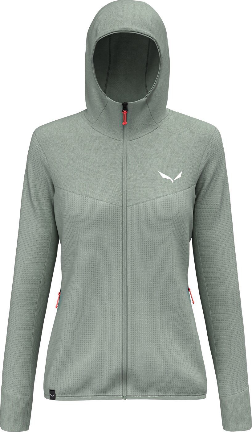 Von Wanderungen in den Bergen bis zu Erkundungstouren auf der ganzen Welt: Die Puez Waffle Hybrid Hooded Jacket ist ein durchdachter, vielseitiger Midlayer in mittlerer Stärke aus Polarlite-Stretch-Fleece mit über 50 Prozent recyceltem Polyester. Die weiche, flauschige Kanalstruktur erzeugt Lufteinschlüsse, die Luft und Wärme speichern können und einen hervorragenden Feuchtigkeitstransport ermöglichen. Gleichzeitig reduziert diese Gitterstruktur das Gesamtgewicht des Stoffes und macht den Damen-Hoody leicht und kompakt. Die weiche, anliegende Kapuze sowie die Ärmelbündchen mit integrierter Daumenschlaufe geben ein zusätzliches Plus an Wärme, sobald die Temperaturen frischer werden. In den zwei seitlichen Reißverschlusstaschen sind deine Kleinigkeiten schnell griffbereit ? und bleiben sicher verstaut. Die Jacke ist Teil der Salewa Committed Kollektion, dessen Produkte nach unseren zusätzlichen Umwelt- und Эко-товарыsstandards produziert werden, um einen möglichst geringen ökologischen Fußabdruck zu hinterlassen. Unsere Puez Waffle Hybrid Hooded Jacket ist ein vielseitiger Midlayer in mittlerer Stärke mit einem idealen Wärme-Gewichts-Verhältnis.