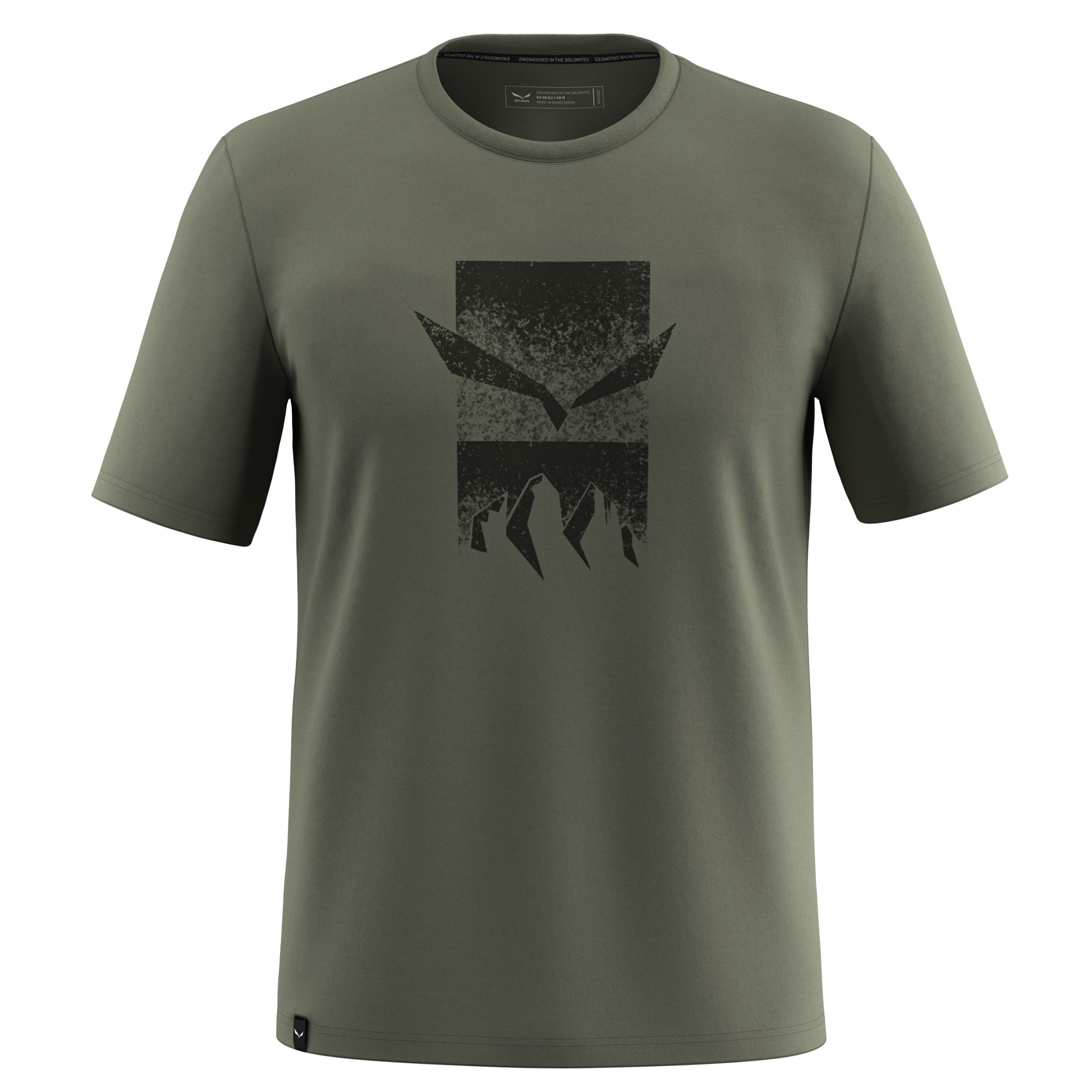 Spigolo Giallo, Comici-Dimai, Via Cassin, Hasse Brandler, Spigolo degli Scoiattoli ? die berühmten Drei Zinnen sind Schauplatz zahlreicher berühmter und historischer Dolomitenführen, die zu Meilensteinen in der Klettergeschichte geworden sind. Ein faszinierender Ort, der auf unserem Eagle 3Cime T-Shirt verewigt ist. Neben der ikonischen Drei-Zinnen-Grafik überzeugt das Shirt mit einer Materialmischung aus weicher Baumwolle und natürlichen, biobasierten Tencel? Lyocell Fasern, die für ein ideales Feuchtigkeitsmanagement sorgen und geruchshemmend wirken. Tencel? wird außerdem in einem umwelt- und klimafreundlichen Verfahren aus dem nachwachsenden Rohstoff Holz gewonnen, wobei nur zertifizierte Quellen für die Produktion infrage kommen. Das klassische T-Shirt mit Rundhalsausschnitt ist vielseitig einsetzbar ? und für jede Unternehmung am Berg oder in der Stadt bereit.