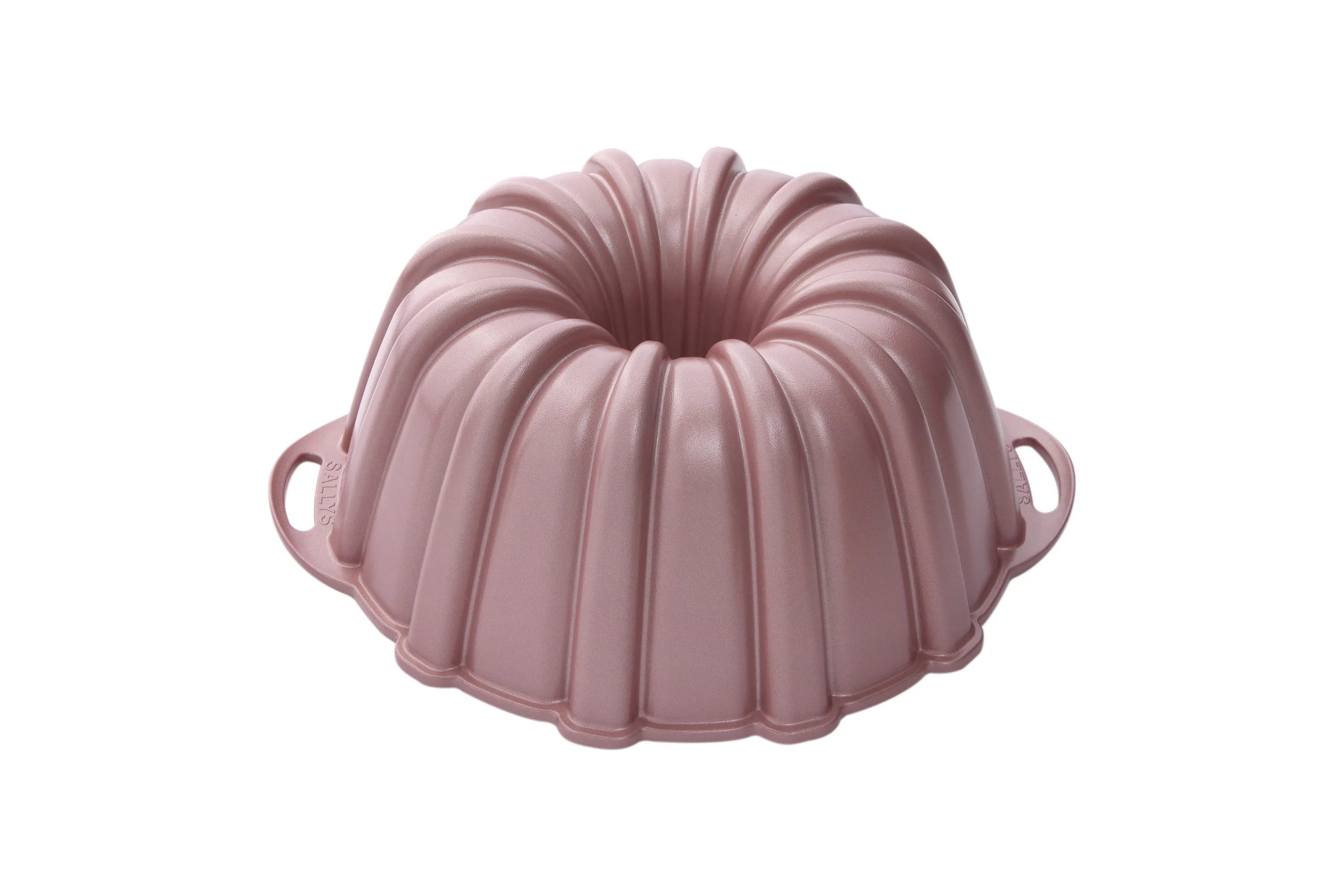 Entdecke Sallys exklusive Gugelhupfform, die in jeder Küche für Backfreude sorgt. Durch ihre robuste Konstruktion aus Aluminiumguss ist diese Backform besonders langlebig und ein zuverlässiger Begleiter für zahlreiche Backerlebnisse. Die dicke Wandstärke des Materials ermöglicht eine optimale und gleichmäßige Wärmeverteilung, wodurch deine Kuchen gleichmäßig gebacken werden. Die einzigartigen, seitlich geneigten Griffe dieser Gugelhupfform sind nicht nur ein Hingucker, sondern erhöhen auch die Funktionalität. Sie erleichtern das Anheben und Entformen des Kuchens und fügen sich harmonisch in das elegante Design der Form ein. Diese Griffe sind eine Eigenentwicklung aus dem Sallycon Valley, die der klassischen Gugelhupfform einen modernen und praktischen Touch verleihen. Möchtest du auch erleben, wie mühelos Backen sein kann? Bitte entferne vor der ersten Benutzung sämtliche Verpackungen und Etiketten. Reinige die Form mit flüssigem Spülmittel und heißem Wasser. Fette die Form vor jedem Gebrauch, um ein einfaches Lösen des Kuchens zu gewährleisten. Achte darauf, die Form nicht leer oder unbeaufsichtigt im Ofen zu erhitzen, um Beschädigungen der Antihaftschicht zu vermeiden. Benutze zum Schutz der Oberfläche ausschließlich Silikon- oder Holz-Utensilien. Warum ist es so wichtig, deine Backform mit Sorgfalt und den richtigen Materialien zu reinigen? Reinige die Form nach dem Gebrauch mit heißem Wasser, Spülmittel und einem weichen Schwamm oder Bürste. Vermeide scharfe Reinigungsmittel oder Metallschwämme, um die Antihaftbeschichtung nicht zu beschädigen. Obwohl die Form spülmaschinenfest ist, empfehle ich die Handwäsche, um die Langlebigkeit zu erhöhen. Bei hartnäckigen Speiseresten weiche