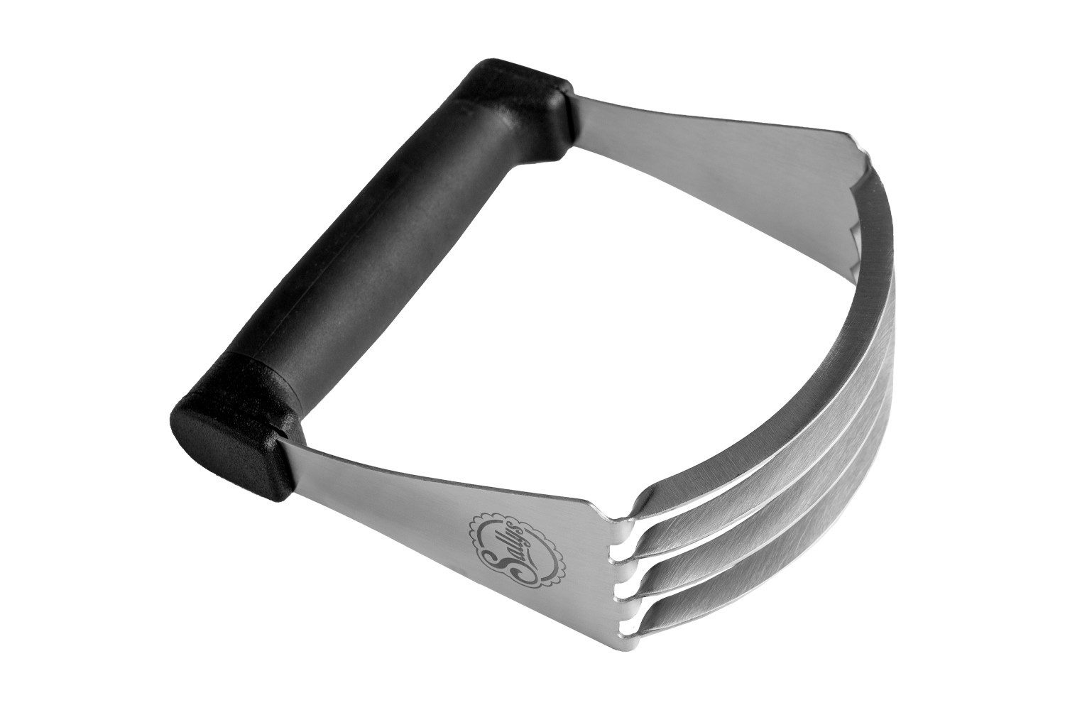 Meinen Teig-Smasher nutze ich am liebsten, um Mürbeteig oder Streusel (Crumble) herzustellen. Die stumpfen Klingen sorgen dafür, dass die kalte Butter ideal mit den trockenen Zutaten vermischt wird, ohne dabei die Arbeitsplatte zu zerkratzen. Durch den ergonomisch geformten Silikongriff liegt der Küchenhelfer gut in der Hand. Die stumpfen, abgerundeten Klingen sorgen dafür, dass die Zutaten in einer Wiegebewegung schnell und ohne viel Aufwand verarbeitet werden können.