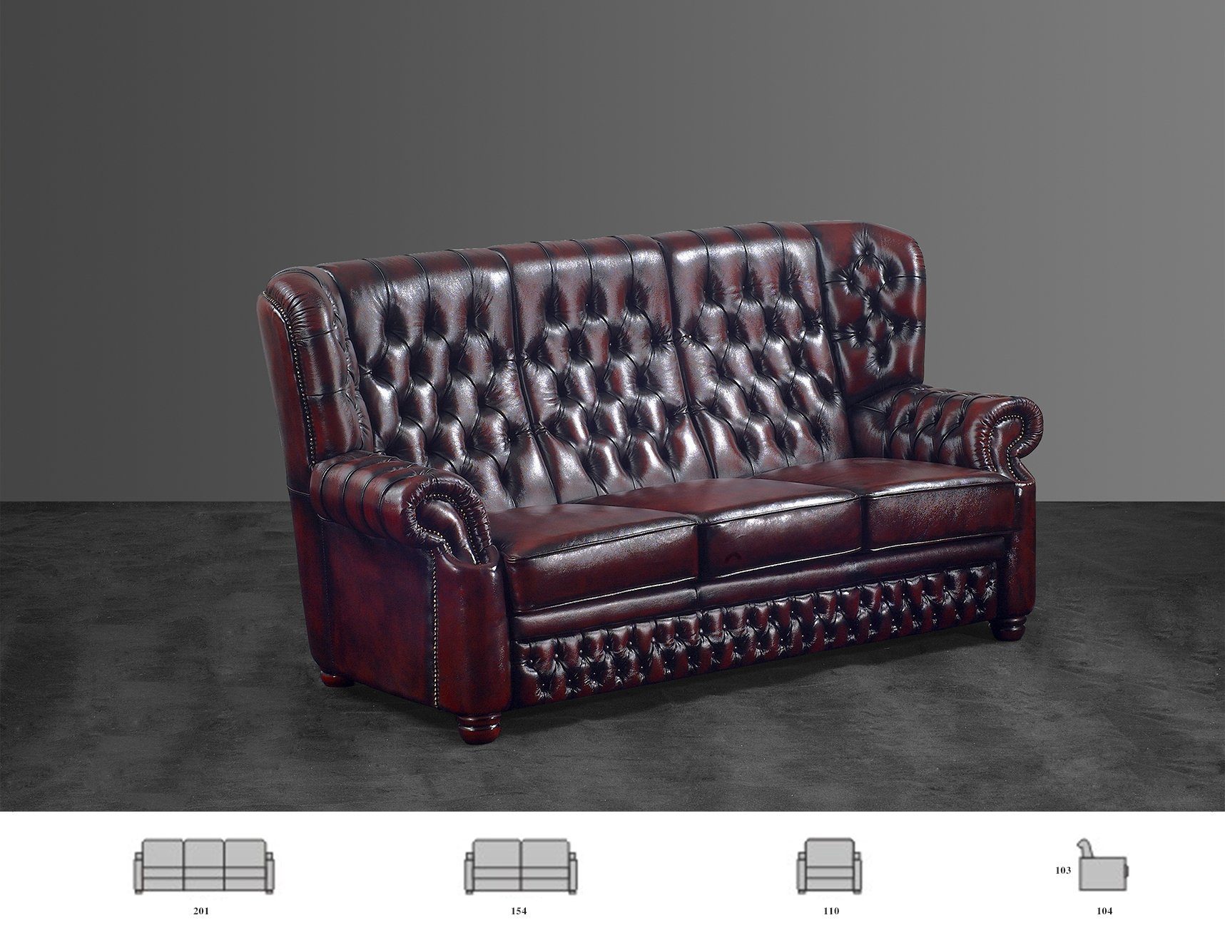Все beanspruchten Stellen (Sitzflächen, Rückenlehnen, Armlehnen, Kissen) der Salottini Möbel sind mit 1,6 - 1,8mm dicken und komplett durchfärbten italienischen Leder bezogen. Die Möbel werden ausschließlich in professioneller Handarbeit für Sie nach Ihren Vorgaben gefertigt. Die Farbe auf dem Foto ist Brush of Red.