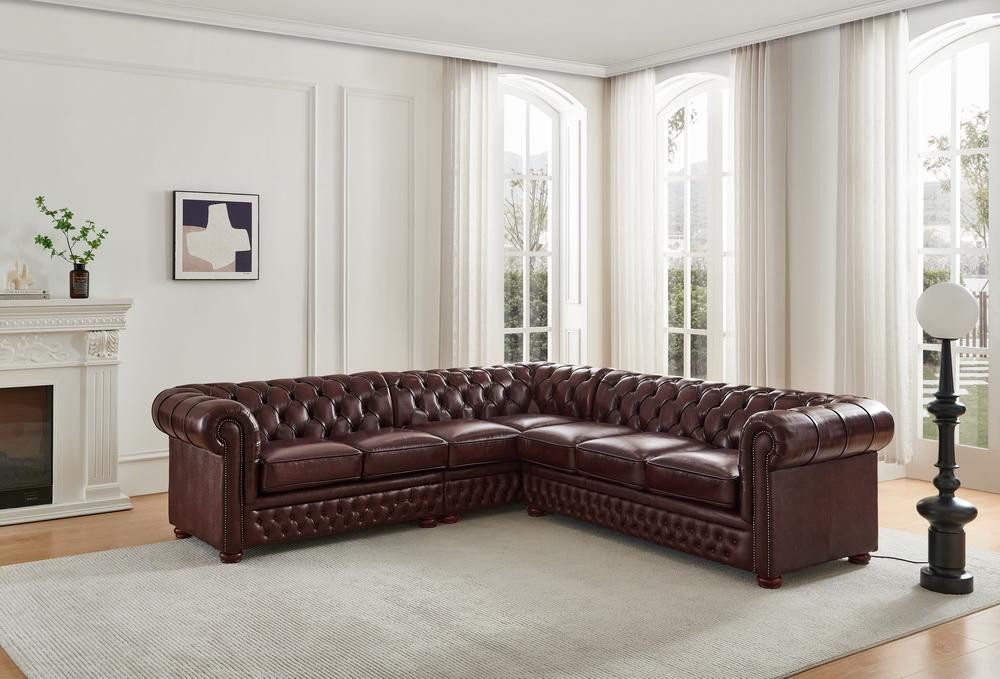 Auf Grund der Sitztiefe und Sitzhöhe bietet dieses Chesterfield Ecksofa einen komfortablen Sitzkomfort. Dieses Sofa wird vollständig von Hand gefertigt.