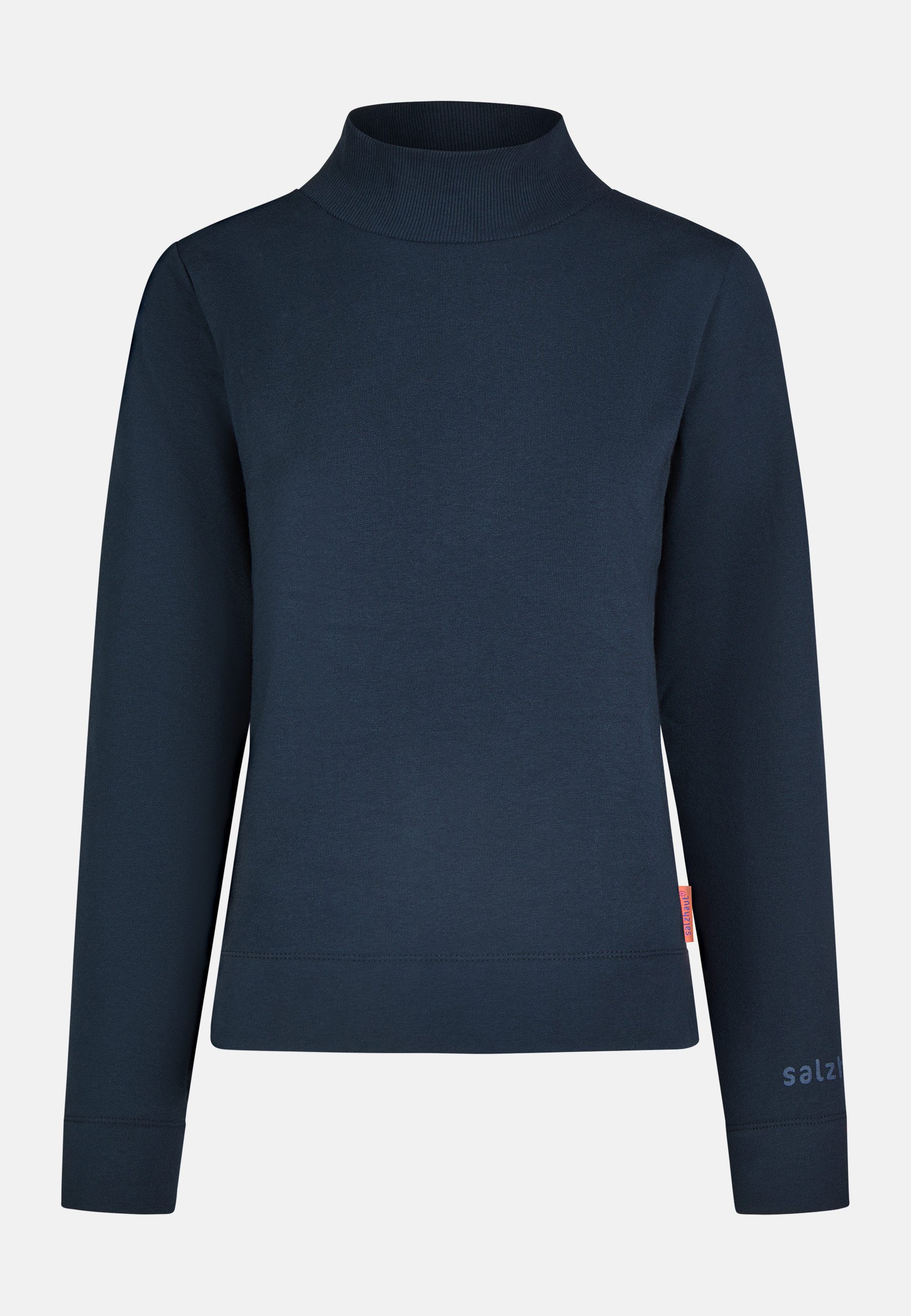 Erhältlich in Navy und Beetroot – zwei Typen, zwei Stimmungen, volle Stil-Power Gerippter Stehkragen 8 cm – aberwitzig stilsicher salzhaut-Label am unteren Bund – kleines Detail mit großer Wirkung Rippenbündchen am Bund 10 cm; breite Ärmelbündchen 9,5 cm – Passform trifft Punchlines Styling-Tipps