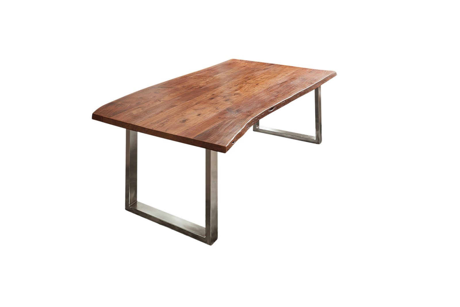 Hochwertiger Esszimmertisch Bernhard in der Размер 140x80cm – Akazienholz massiv & nussbaumfarben, echte Baumkante, U-Gestell edelstahl