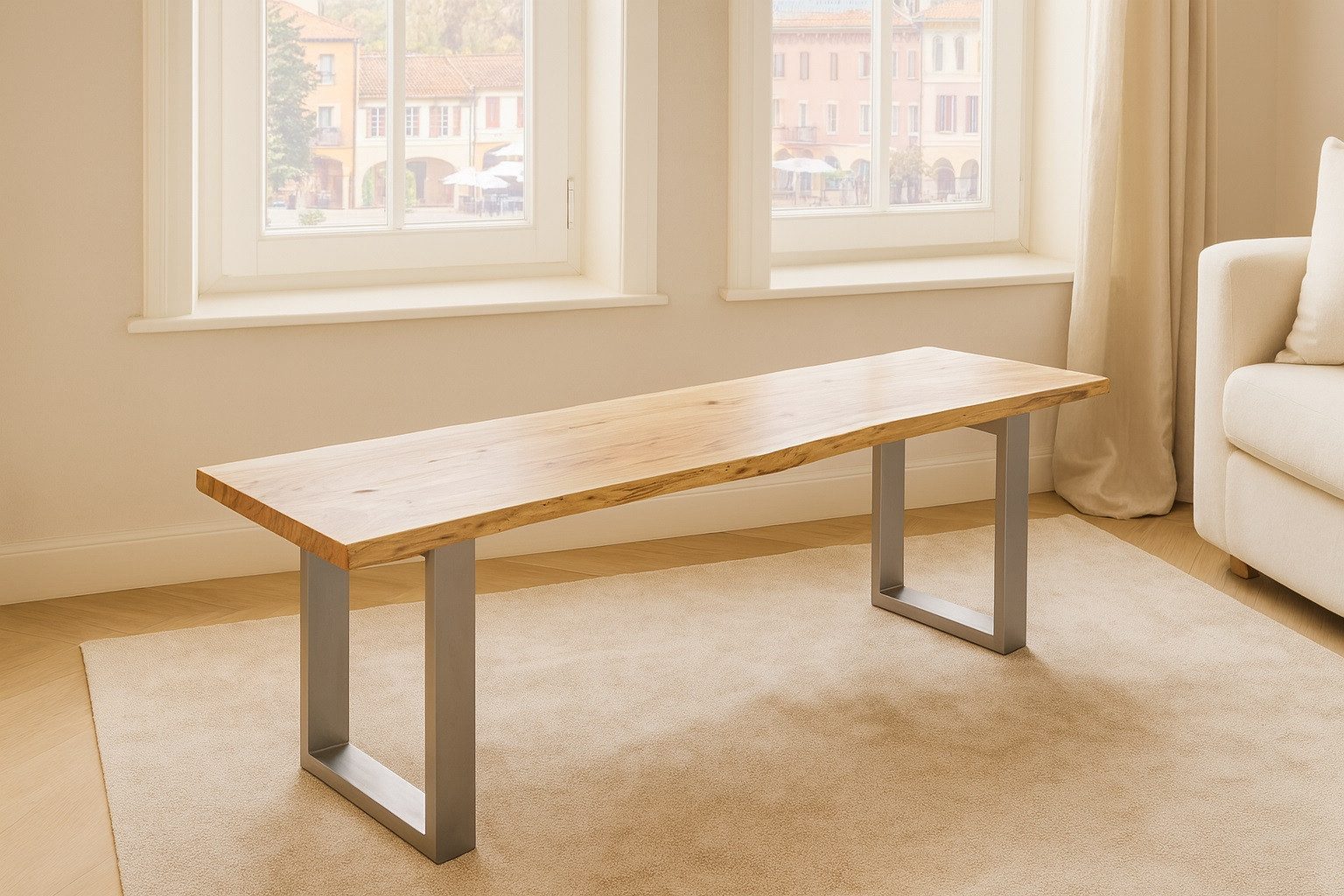 Pflegehinweise | Pflegeanleitung für geölte Tische Möbel aus Massivholz verleihen Raumen eine gewisse Ruhe, Natürlichkeit und schaffen eine angenehme Atmosphäre. Damit das auch so bleibt, ist eine entsprechende Pflege der Lieblingsstücke erforderlich - das gilt speziell für Möbel, die täglich beansprucht werden, wie beispielsweise Tische. Gönnen Sie daher Ihrem Möbelstück zur Pflege und Auffrischung der Oberfläche von Zeit zu Zeit 1- bis 2-mal jährlich eine Behandlung mit einem natürlichen Möbelöl. Das gelegentliche Nachölen von Massivholzmöbeln können Sie ganz einfach selbst erledigen. Mit unserem Schritt für Schritt Anleitung erstrahlt Ihr Möbelstück in Kürze in neuem Glanz! Zunächst ist wichtig, dass die Oberfläche Ihres Möbelstücks bereits geölt oder noch unbehandelt ist. Gewachste, lasierte oder lackierte Oberflachen müssen erst abgeschliffen werden, bevor eine Behandlung mit Öl möglich ist. Wir empfehlen natürliches Hartöl, Leinöl! oder ein Öl mit Wachsanteil. Testen Sie zunächst an einer unauffälligen Stelle, welchen Effekt das Öl auf Ihr Möbelstück hat und ob Ihnen die neue Optik gefällt. Oftmals wird Holz durch einölen nämlich dunkler. Bitte führen Sie die Reinigung wie folgt durch: Verwenden Sie zur Säuberung des Tisches ein mildes Reinigungsmittel (zum Beispiel Geschirrspülmittel). Des Впередen benötigen Sie einen Lappen und einen Eimer, den Sie mit Wasser und etwas Spülmittel füllen. Nun wischen Sie mit dem leicht nassen Lappen über die gesamte Fläche Ihres Tisches. Um die Trocknung des Tisches zu beschleunigen, sollten Sie mit einem trockenen Tuch noch einmal über die Tischfläche wischen. Sobald der Tisch getrocknet ist, können Sie mit dem Ölen beginnen. Hierzu verwenden Sie bitte Leinöl und einen Schwamm (wahlweise eignet sich auch ein Tuch oder eine Küchenpapierrolle). Anschließend lassen Sie circa 75 ml Öl auf den Tisch laufen und verreiben dieses gleichmäßig über den ganzen Tisch. Bitte achten Sie darauf, dass sich von nun an mindestens zwei Stunden kleine Kinder oder Tiere in der Nähe des Tisches fernhalten sollten, da das Öl nicht zum Verzehr geeignet ist. Zudem sollten Sie den Kontakt von Kleidungsstücken mit dem frisch geölten Tisch vermeiden. Achtung: Bitte waschen Sie den Schwamm anschließend sehr gut aus, es besteht die Gefahr der Selbstentzündung! Falls Sie den Eindruck haben, dass die Oberfläche Ihres Tisches zu rau ist, können Sie diese vor dem Ölen mit einem Stück Schleifschwamm abreiben. Es ist möglich, dass die Farbe des Tisches danach heller wird. Sobald der Tisch anschließend geölt wird, erhält er wieder einen dunkleren Farbton. |