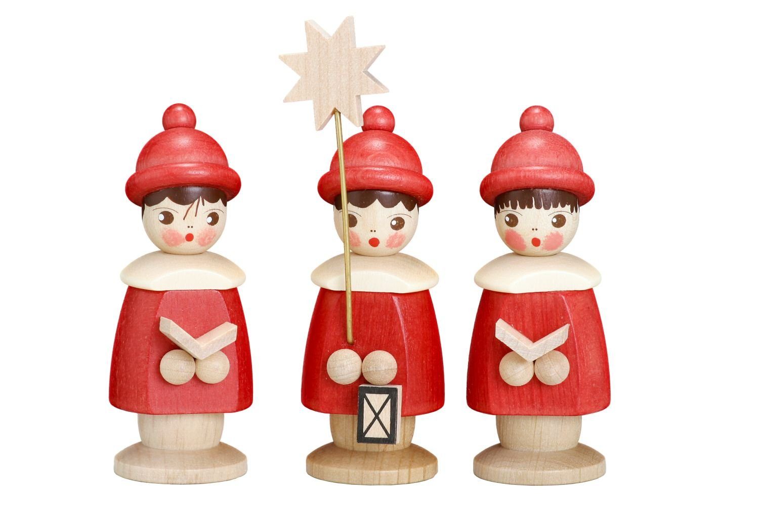 Miniaturfiguren 3 Kurrendefiguren rot Satz Kurrendefiguren 2 Sänger 1 Sternträger Размер 6,2 cm rot lasiert aus Holz Höhe 6,2cm NEU |