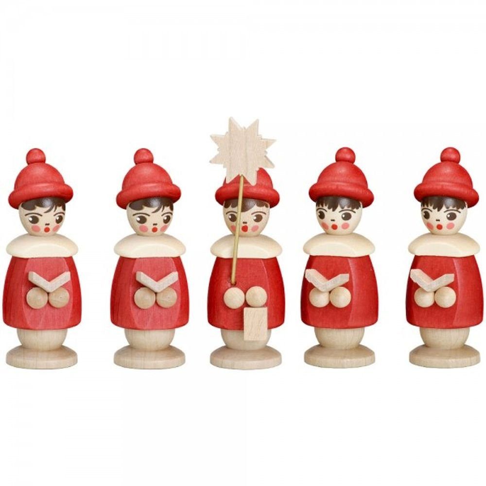 Miniaturfiguren 5 Kurrendefiguren rot Satz Kurrendefiguren 4 Sänger 1 Sternträger Размер 6,2 cm rot lasiert aus Holz Höhe 6,2cm NEU |