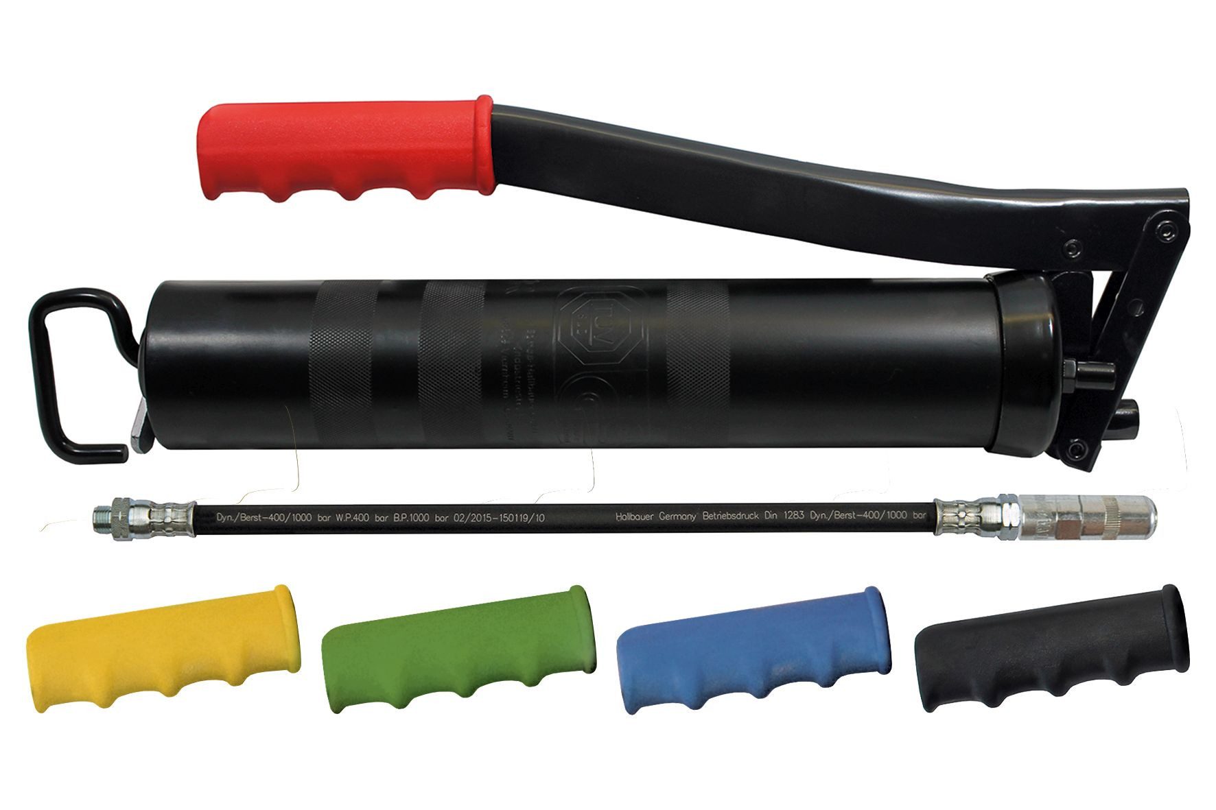 5 verschiedenfarbige Handgriffe (rot, blau, grün, gelb, schwarz) zur besseren Zuordnung von Spezialfetten sind im Lieferumfang enthalten.