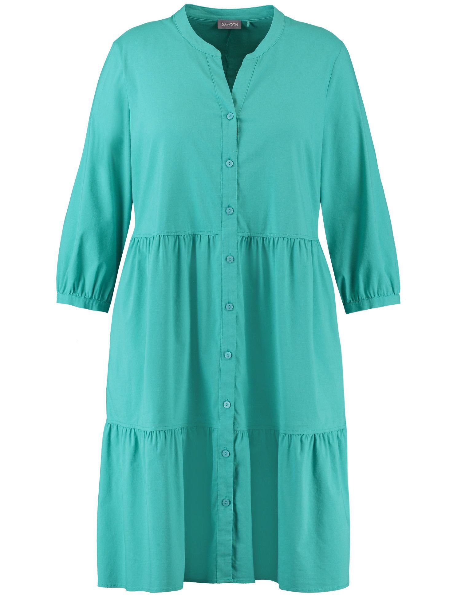 Stufenkleid mit Kräuselungen. Ein fabelhaftes Kleid für wärmere Tage! Mit seiner ausgestellten A-Linie und der raffinierten Stufenverarbeitung umspielt das Modell locker deine Silhouette. Für noch mehr Bequemlichkeit sorgen lässige Seitentaschen. Der nachhaltige Baumwoll-Mix mit Stretchkomfort punktet mit angenehmem Tragefeeling.