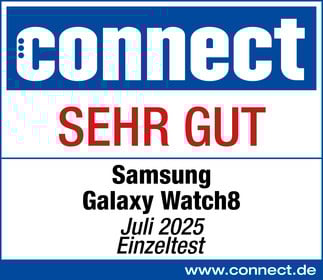 Die Samsung Smart Watch8 erzielt im Einzeltest des Magazins „connect“ das Gesamtergebnis „sehr gut (462 Punkte)“ (von max. 500). Das Gerät ist „sehr leicht, ultraflach und mit exzellenter Haptik“. Das „sehr große“ Display hat eine starke Leuchtkraft. Zwar ist die Akkulaufzeit „vergleichsweise kurz“. Aber die „sehr gute“ Ausstattung überzeugt u. a. mit einem „umfangreichen Gesundheitstracking“, einem Lauf-Coach, Gemini und vielen weiteren smarten Funktionen. Außerdem arbeitet die Sensorik „sehr genau“. Insgesamt ist das Modell „die Referenz bei Android-Smartwatches 2025“.
