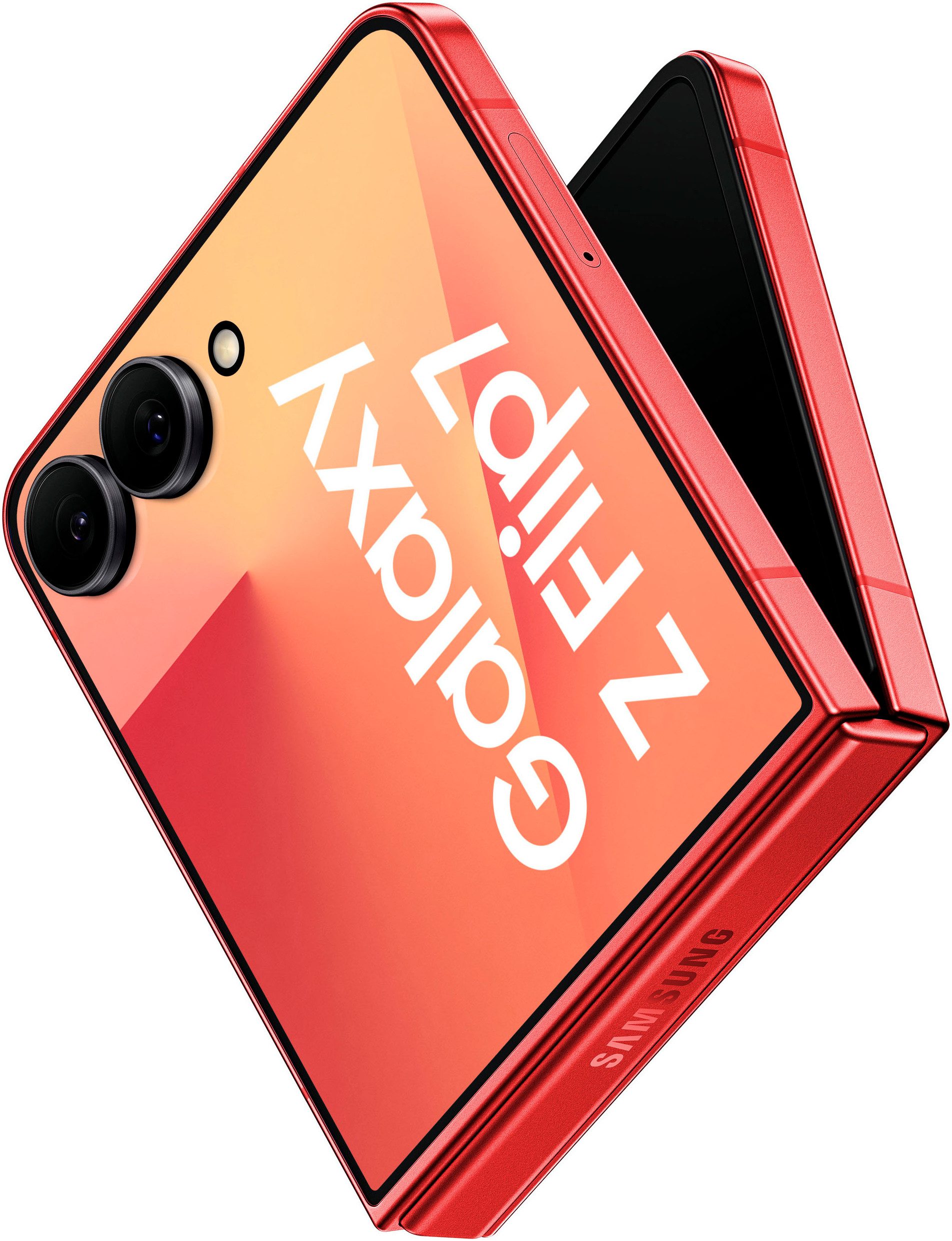 1. Im Vergleich zu früheren Galaxy Z Flip-Modellen. 2. Der Armor Aluminum-Rahmen umfasst nicht die Lautstärke- und Funktionstasten oder das SIM-Fach.