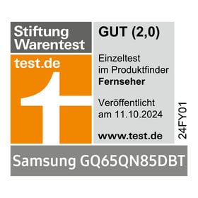 Das Onlineportal „test.de“ der „Stiftung Warentest“ testet den Samsung GQ65QN85DBT im Produktfinder Einzeltest. Die „gute“ Bild überzeugt. Der Ton ist „sehr gut“. Das Modell hat einen soliden Stromverbrauch. Außerdem ist es einfach zu handhaben. Insgesamt erreicht der Fernseher das „test.de“-Qualitätsurteil „GUT (2,0)“.