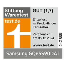Das Onlineportal „test.de“ der „Stiftung Warentest“ testet den Samsung GQ65S90DAT im Produktfinder Einzeltest. Die „sehr gute“ Bild überzeugt. Auch der Ton ist „sehr gut“. Das Modell hat einen geringen Stromverbrauch. Außerdem ist es einfach zu handhaben. Insgesamt erreicht der Fernseher das „test.de“-Qualitätsurteil „GUT (1,7)“.