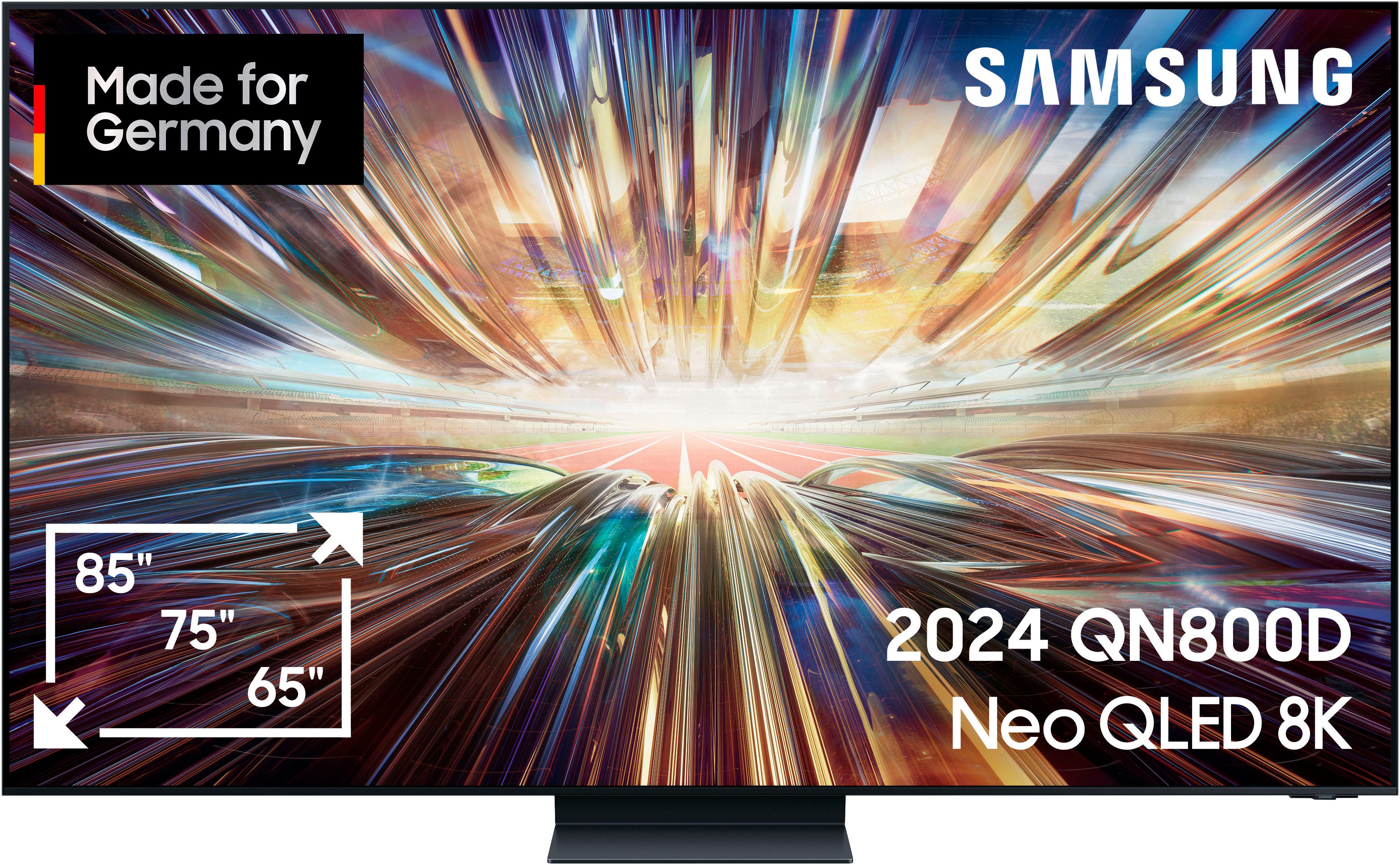 Der GQ85QN800DXT ist ein 8K KI Neo QLED-Fernseher von Samsung. Mach aus deinem Wohnzimmer dank des Sourround-Sounds einen kleinen Filmpalast und tauch auf dem großen Bildschirm mitten ins Erlebnis ein. Serien und Filme streamen ist dank WLAN kein Problem. Mit DVB-S und DVB-T empfängst du viele internationale Sender. Das Modell lässt dich weitere Geräte wie Spielekonsole, Camcorder & Co. unkompliziert mit dem Fernseher verbinden. Dieses Gerät eignet sich für dich, wenn du einen großen 85 Zoll (214 cm) TV suchst, der mit seinem Internetzugang punktet und aus deinem Zuhause ein Kino macht.