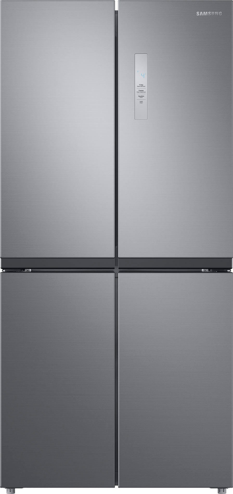 Der Multi Door Kühlschrank »RF48A400EM9« von Samsung hat eine hohe Funktionalität und ist freistehend. Das Gerät bietet ausreichend Platz für deinen Einkauf durch seine Maße von 83,3 x 179,3 x 74 cm (B/H/T) und das Gefriervolumen von 159 l und Kühlvolumen von 329 l. Das Betriebsgeräusch des Modells liegt bei 41 dB. Durch die No Frost-Funktion muss das Gerät nie wieder abgetaut werden. Es sind zwei Gefrierschubladen, zwei Gemüseschubladen und vier Gefrierfächer mit Klappe zum Verstauen des Einkaufs integriert. Auf dem auf der Tür installierten Display kann die genaue Temperatur im Gerät abgelesen werden. Auf drei Ablageflächen aus Sicherheitsglas ist im Multi Door Kühlschrank viel Platz für Lebensmittel. Die sechs Türablagen ermöglichen eine übersichtliche Lagerung. Die Supergefrier-Funktion sorgt dafür, dass sich die Lebensmittel besonders schnell kühlen und einfrieren lassen. Liegt eine Fehlfunktion vor oder steht die Tür zu lange offen, gibt der Multi Door Kühlschrank ein akustisches Warnsignal. Всеs im Blick hat man außerdem dank der LED-Innenbeleuchtung. Wer auf der Suche ist nach einem Gerät, das genug Platz für Nahrungsmittel bietet, der trifft mit dem »RF48A400EM9« von Samsung eine gute Wahl.