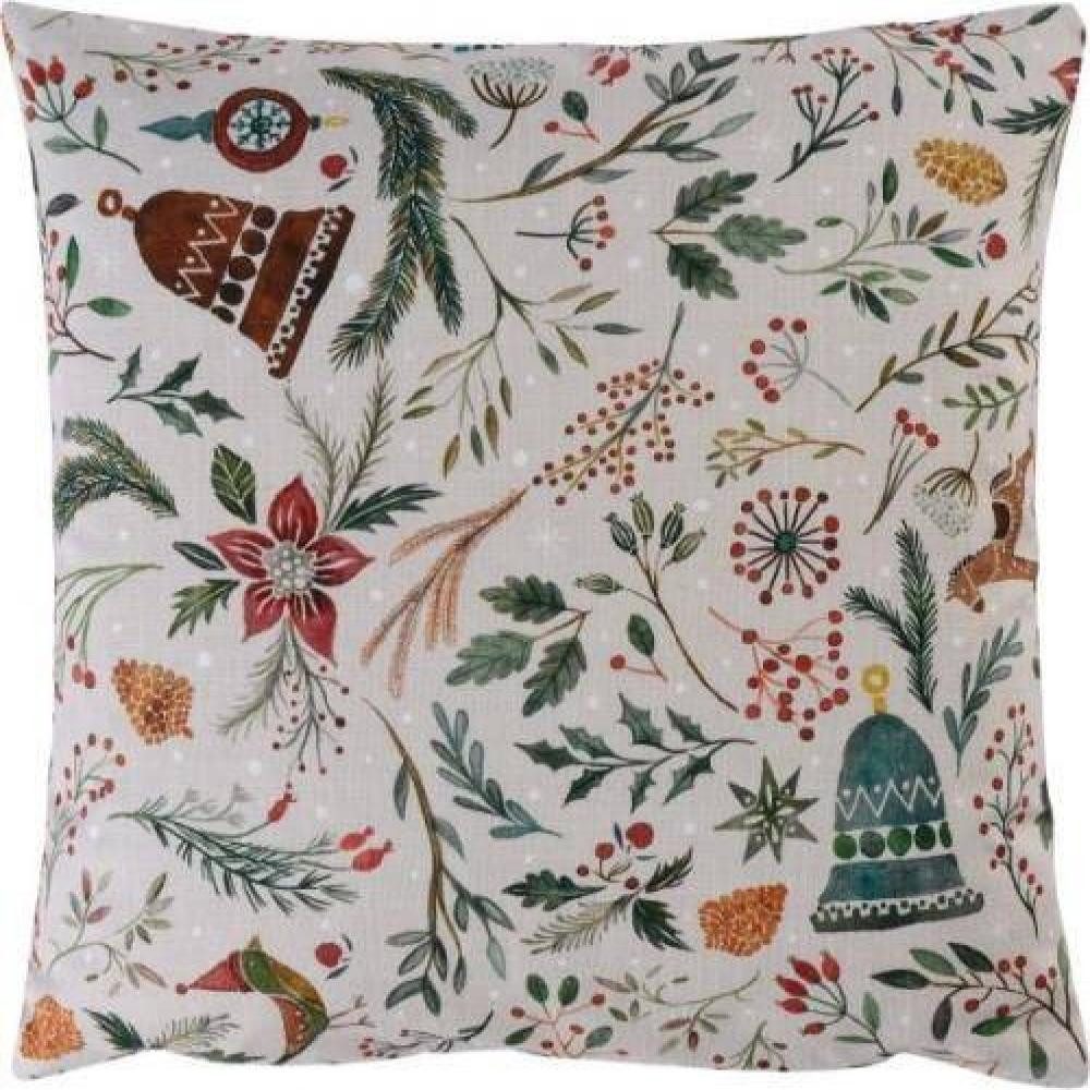 Quirliger Überschwang für die schönste Zeit des Jahres! Küren Sie nicht auch diese entzückende Kissenhülle zu Ihrem Liebling? Wunderschöne weihnachtliche Motive präsentieren sich im perfekten Zusammenspiel! Entdecken Sie Schaukelpferde, Glocken, Tannenzapfen und viele weitere weihnachtliche Motive zwischen Zweigen, Beeren und winterlichen Pflanzen. Dank modernstem Digitaldruck wirken die winterlichen Motive wie gemalt. Bringen Sie sich in Stimmung für das schönste Fest des Jahres und genießen Sie die Vorfreude mit der hochwertigen Kissenhülle aus reinster Baumwolle.