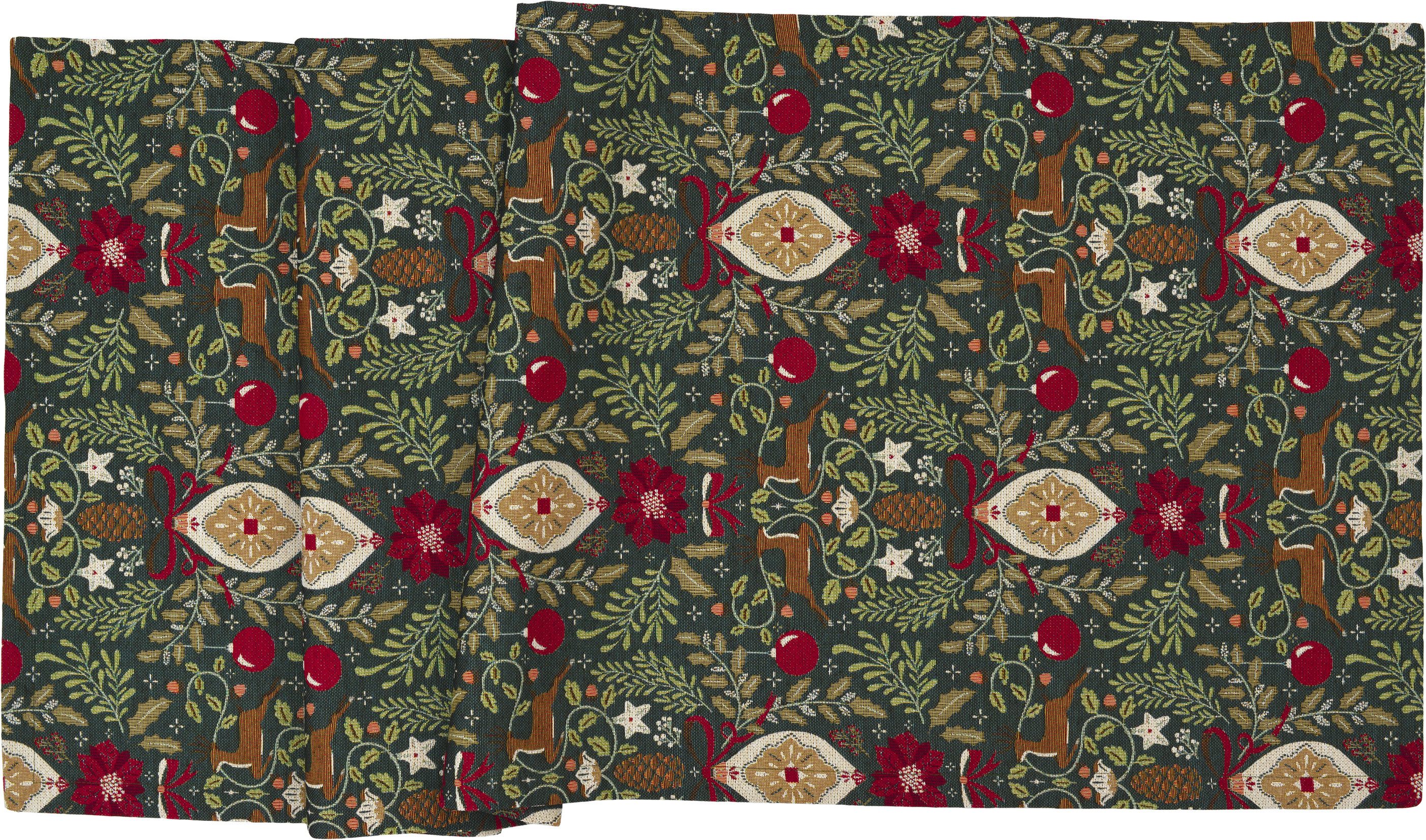 sander table + home Tischläufer Tischläufer Dexter 50 x 140 cm Hirsche Zapfen dunkelgrün rot (1-tlg)