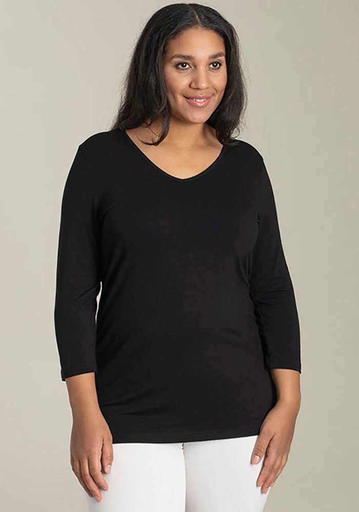 Mit dem 3/4-Arm-Shirt von SANDGAARD stellst du im Handumdrehen ein neues Outfit zusammen. Dieses Shirt hat einen V-Ausschnitt mit eingefasster Kante und ist hüftbedeckend sowie figurbetont geschnitten, sodass es deinen Oberkörper schön zur Geltung bringt.