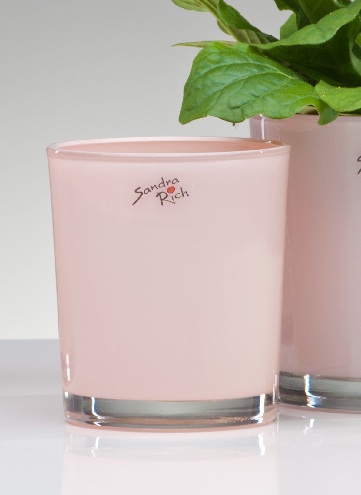 Lieferumfang: 1 Glastopf Marke: Sandra Rich Farbe: rosé Höhe außen/innen: ca. 11 dm/10 cm Durchmesser oben/unten: ca. 9,5 cm/8,5 cm Glasstärke: ca. 0,4 cm Material: Glas Anmerkung: Der Aufkleber mit dem Schriftzug lässt sich rückstandsfrei ablösen.